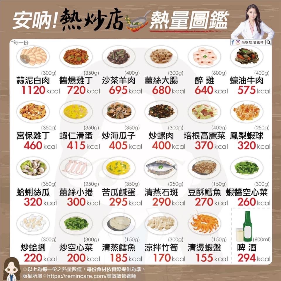 薑絲大腸、沙茶牛肉、醬爆雞丁也都是屬於熱量地雷菜色(大腸是內臟食材、沙茶是高油脂醬)