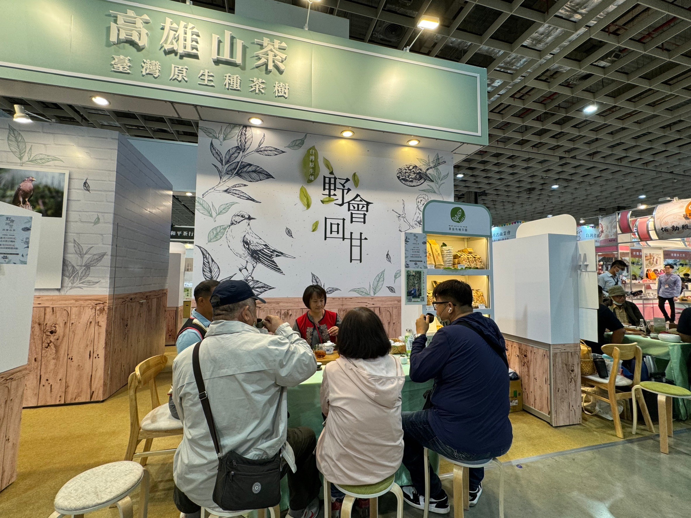 「台灣國際茶業博覽會」17日於南港展覽館登場,高雄市農業局設高雄山茶展區,帶來首選山茶參展,高雄山茶種植在雲霧繚繞的群山峻嶺間,樹高可達十公尺,農民多以野放、低度管理的方式種植,讓茶樹在山林間恣意生長,茶樹與環境互動密切,每座茶園的山茶皆有不同風味。此次參展的山茶品牌以具有有機認證、綠色保育標章為主,反映高雄山茶順應環境、愛護自然,豐富多元的生態多樣性。