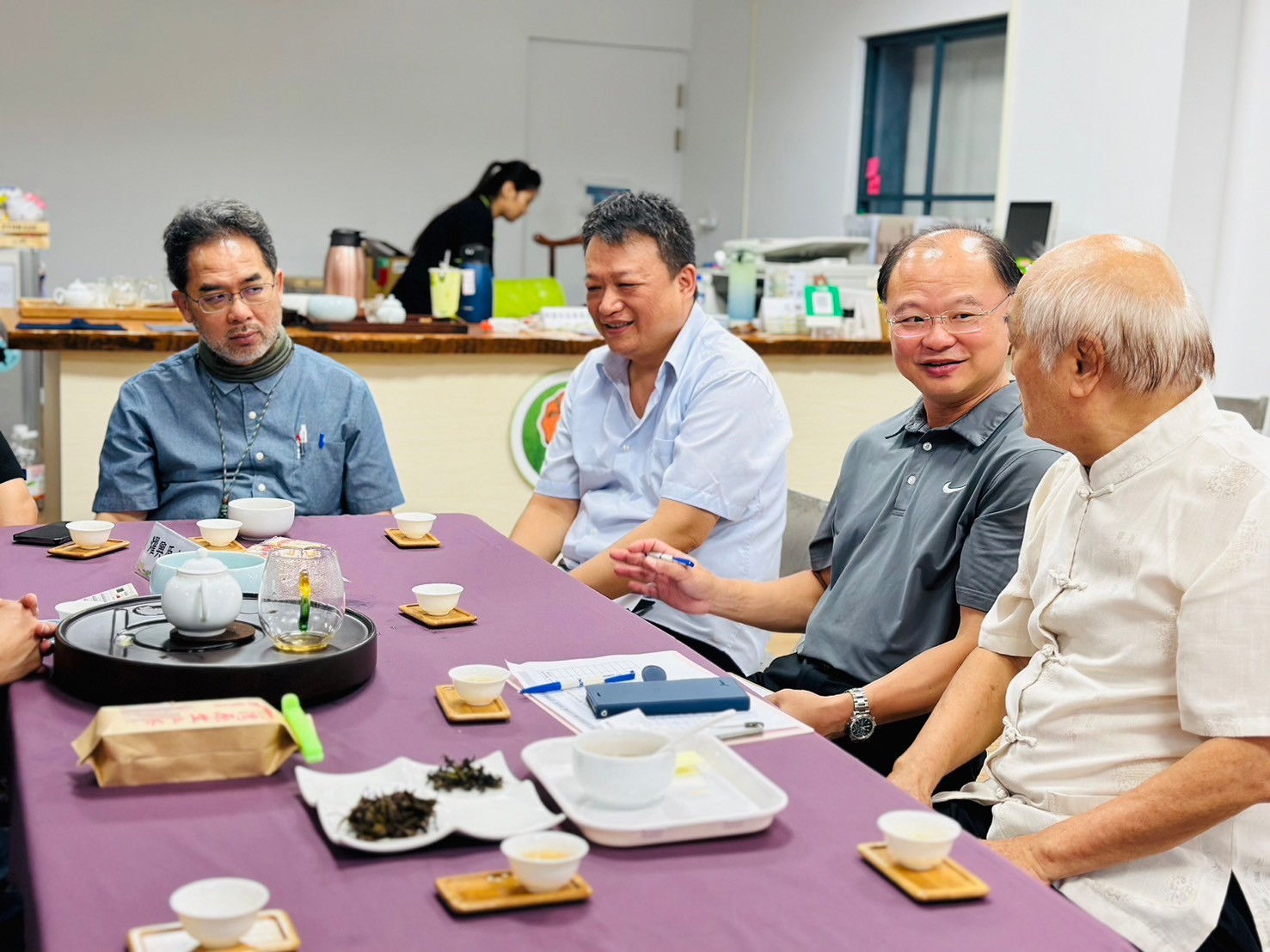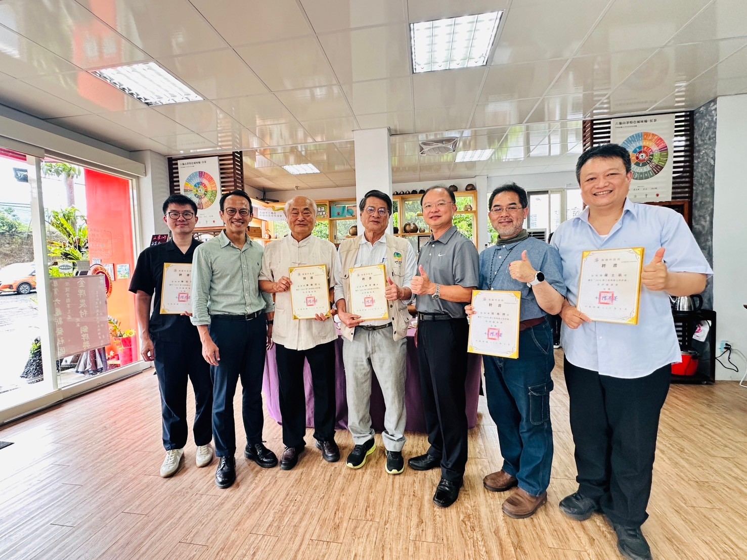 ↑圖說:農業局主秘方啟峰(左2)與茶改場蘇場長(右3)和評鑑委員(圖片來源:高雄市農業局提供)