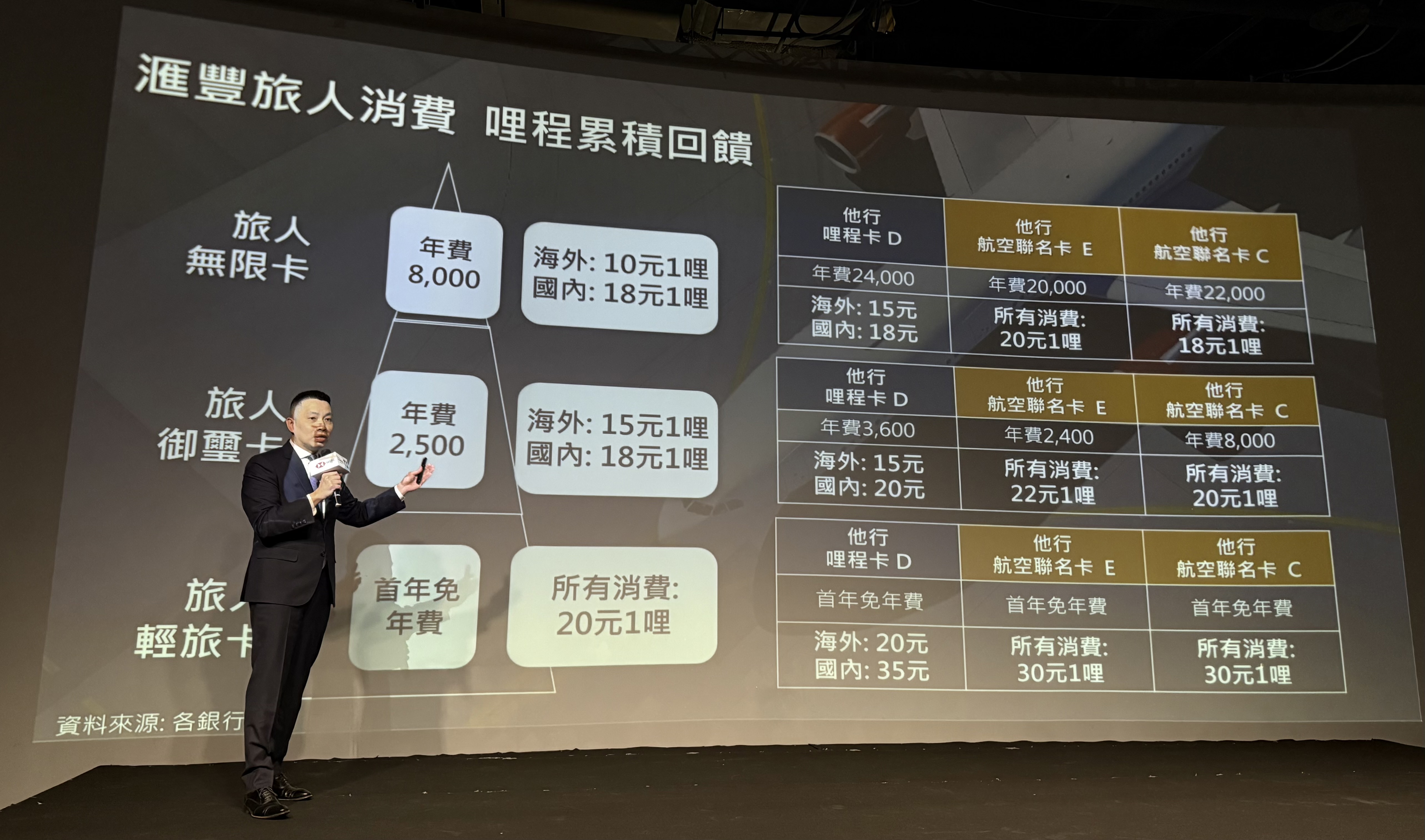 ▼圖說:滙豐(台灣)銀資深副總裁黃至弘說明「滙豐旅人卡」的哩程回饋方式。(圖/記者李錦奇攝影)
