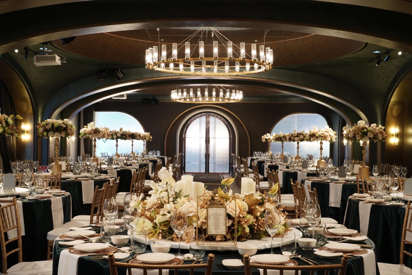 ↑圖說:亞果薈擁有絕美臨港視野,搭配宴會廳內金色光影設計,完美映襯新人閃耀動人的幸福時刻(圖片來源:雲品國際提供)