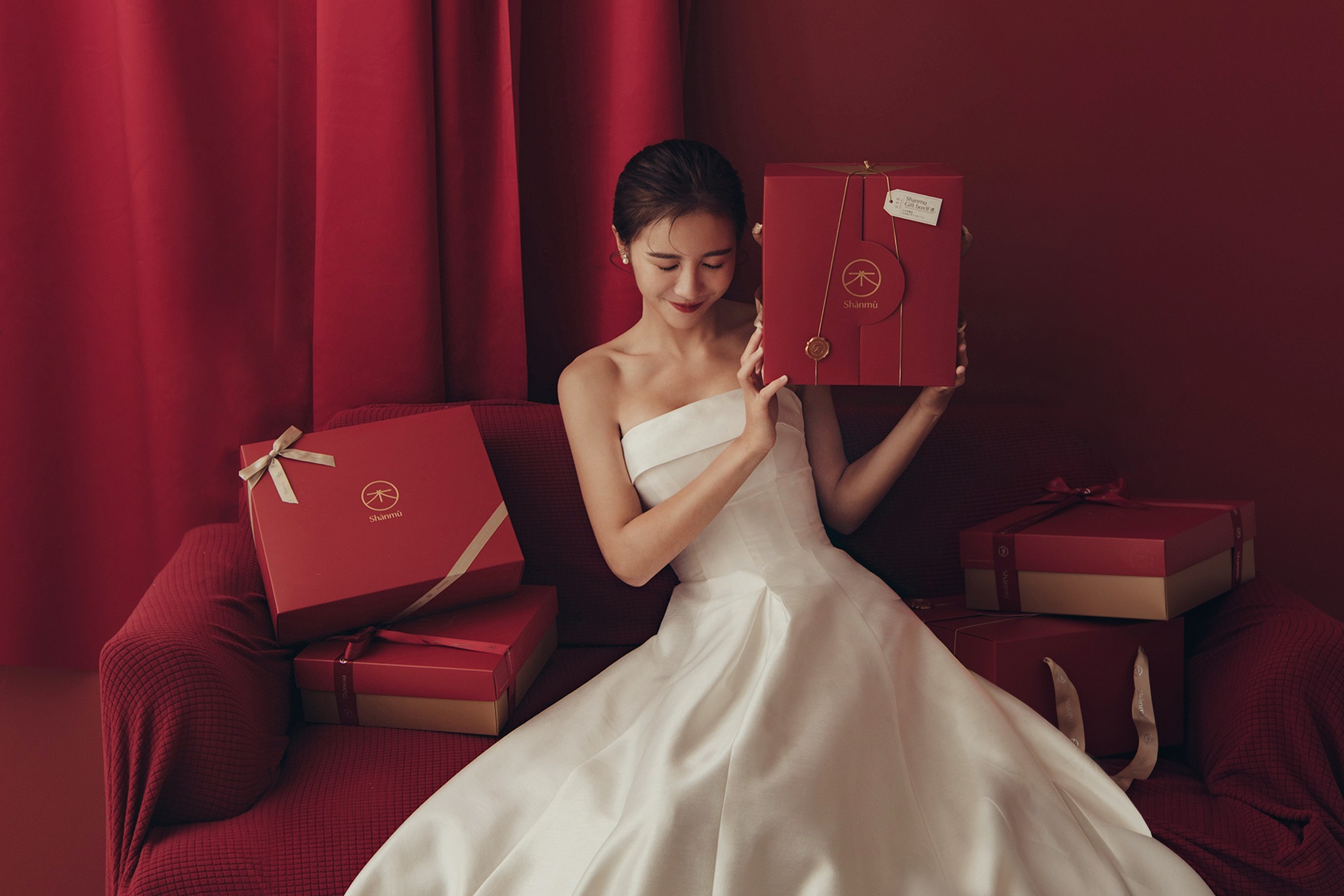 ↑圖說:「神助攻!超頂6選1」婚宴方案,可選擇精緻喜餅品牌三選一,圖為「山木島」經典單層喜餅緞帶禮盒(圖片來源:雲品國際提供)