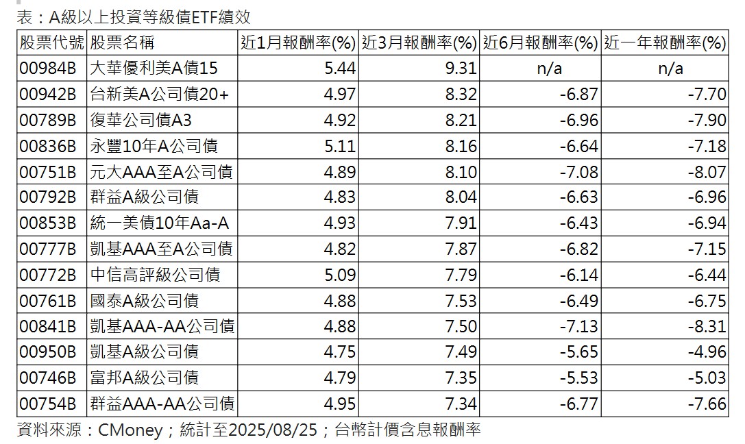 A級美債ETF近3月報酬衝7.9% 法人看好美國9月啟動降息循環