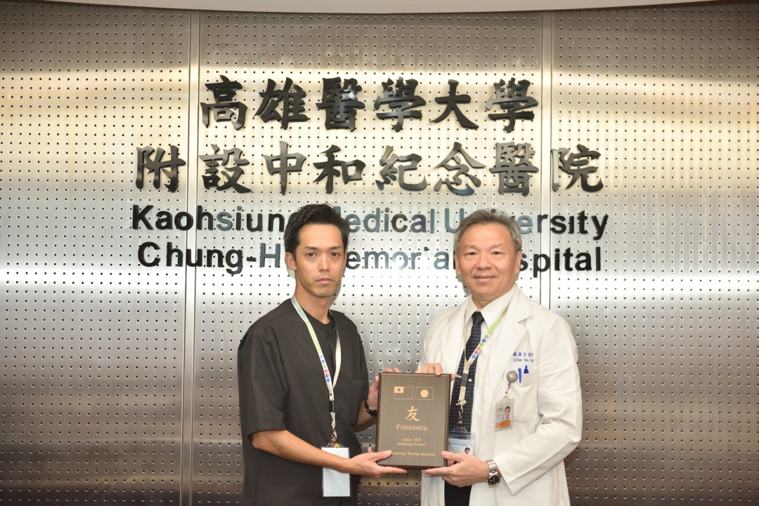 圖說:戴嘉言(右)接待日本NGO來高醫交流。(圖片來源:高醫提供)