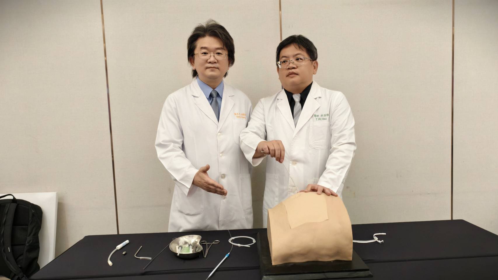 圖說:記者會場示範如何植入腹膜透析導管。(圖片來源:高雄長庚提供)