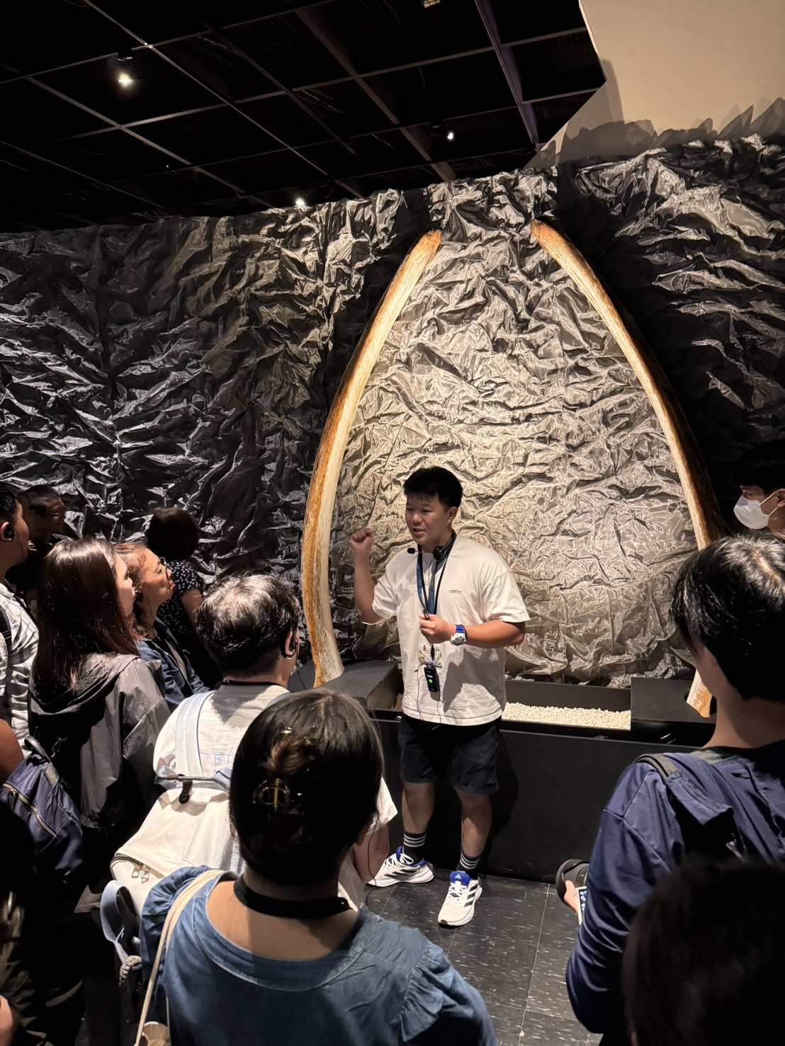 ↑圖說:楊子睿博士親自導覽《鯨掘》特展,帶領參與者認識臺灣鯨豚化石與文化脈絡。(圖片來源:海洋保育署提供)