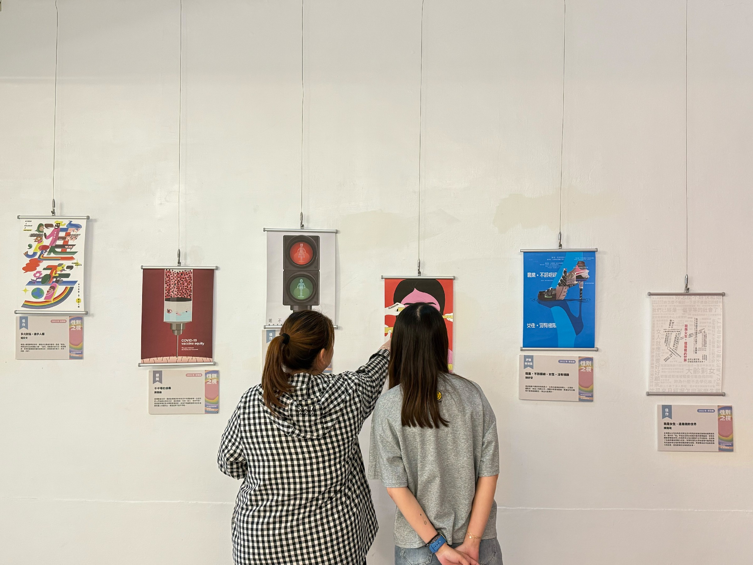 ↑圖說:市民駐足觀展人權海報設計競賽得獎作品,感受創作者對性別議題的細膩詮釋(圖片來源:臺南社會局提供)