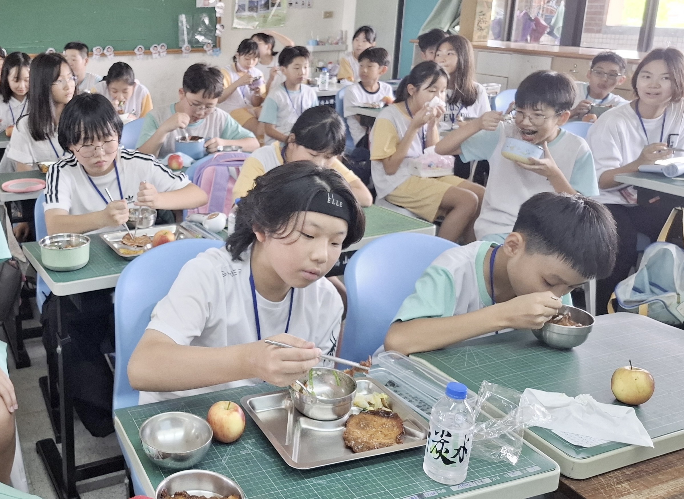 ↑圖說:草邑小學與福山國小共進營養午餐。(圖片來源:高雄市教育局提供)