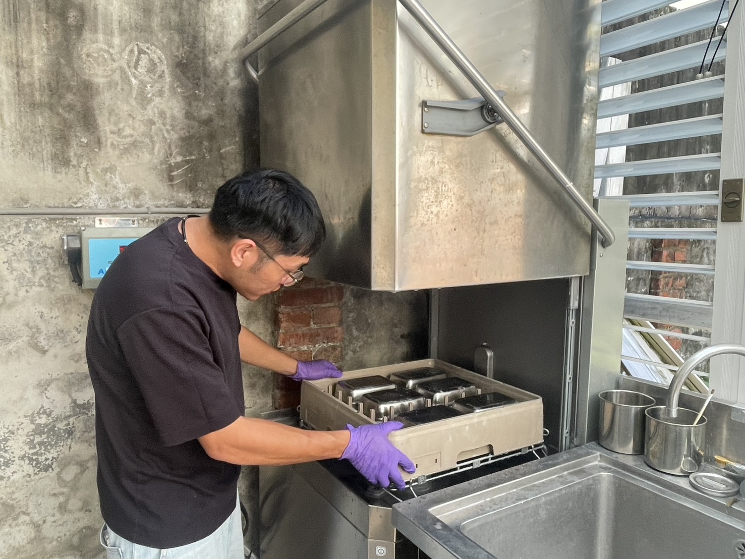 圖說:「禾氣合秝」採用專業洗碗設備清潔循環餐盒,實踐綠色餐飲流程。( 圖片來源/記者林薇安攝)