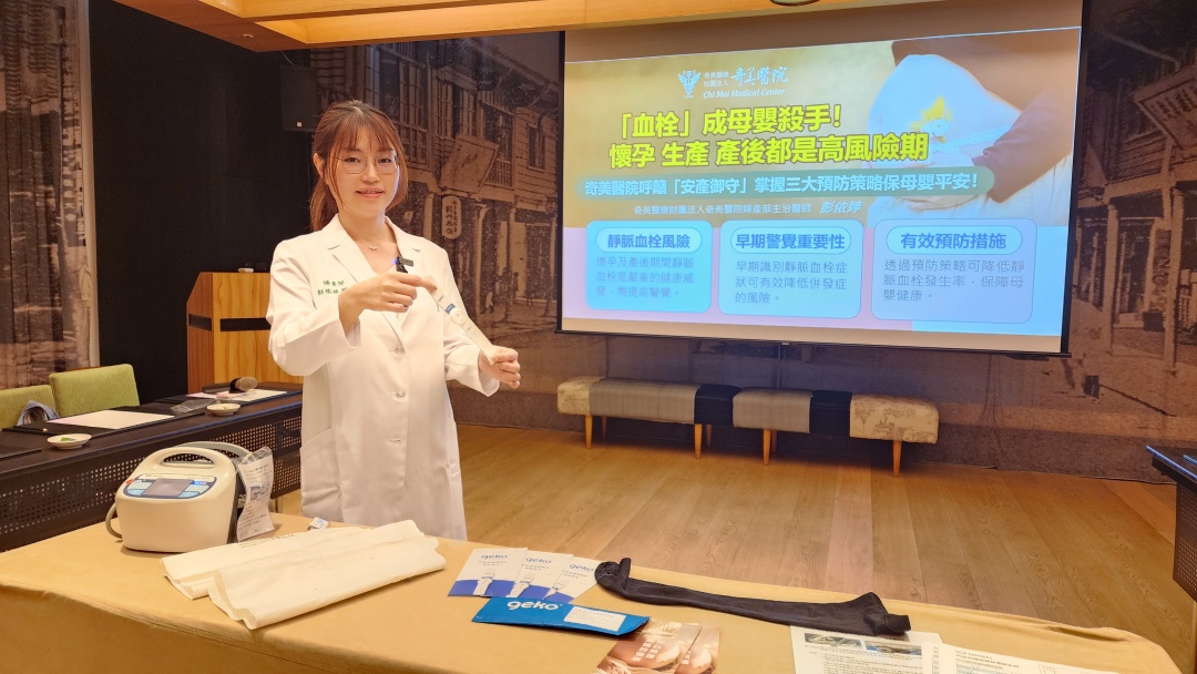 圖說:奇美醫院婦產部主治醫師彭依婷叮嚀孕產婦與家屬,別輕忽下肢腫脹或呼吸異常,一旦懷疑就應立即就醫 (圖片來源/奇美醫院提供)