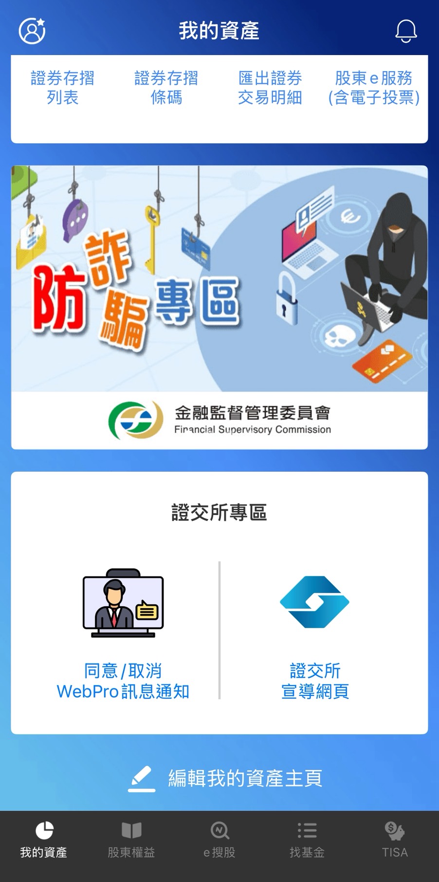 集保e手掌握App,也特別為此增設證交所專區,方便投資人快速連結至證交所針對投資人設計之各宣導網頁,以掌握資本市場重要資訊。