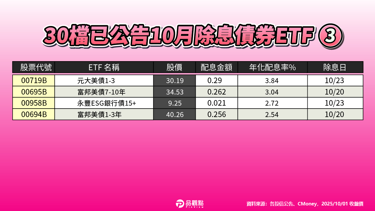 債券ETF十月30檔除息!年化配息率、除息日 匯整表秒懂