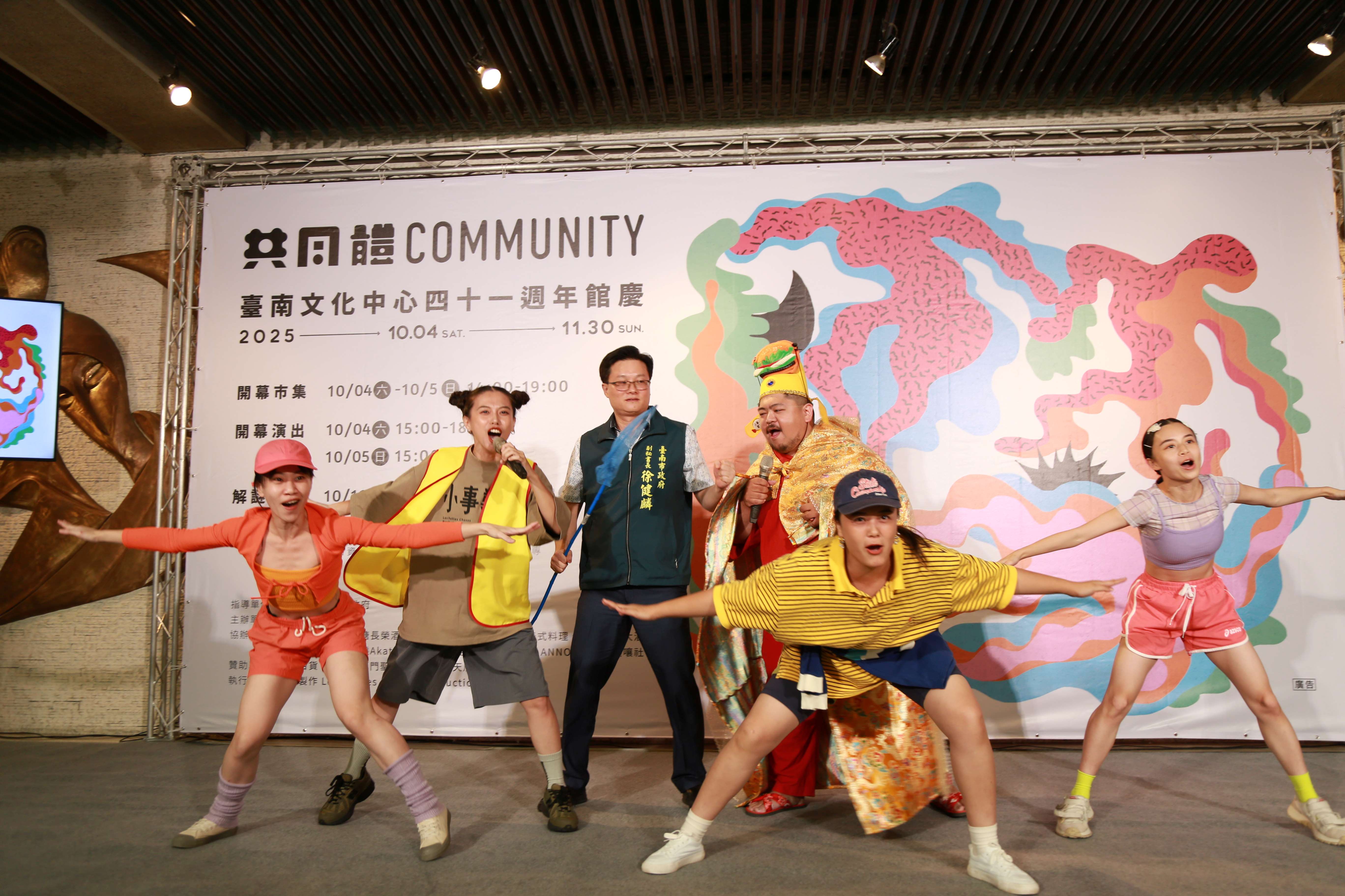 迎接成立41週年,臺南文化中心今年館慶變身為一座結合藝術、市集與遊戲的文化遊樂場。將於10月4日至5日中秋連假熱鬧登場,主題為「共同體」,由知名團隊「小事製作 Les Petites Choses Production」策劃,集結即興表演、參與式舞蹈與互動體驗,邀請市民用身體與心靈重新感受文化能量。