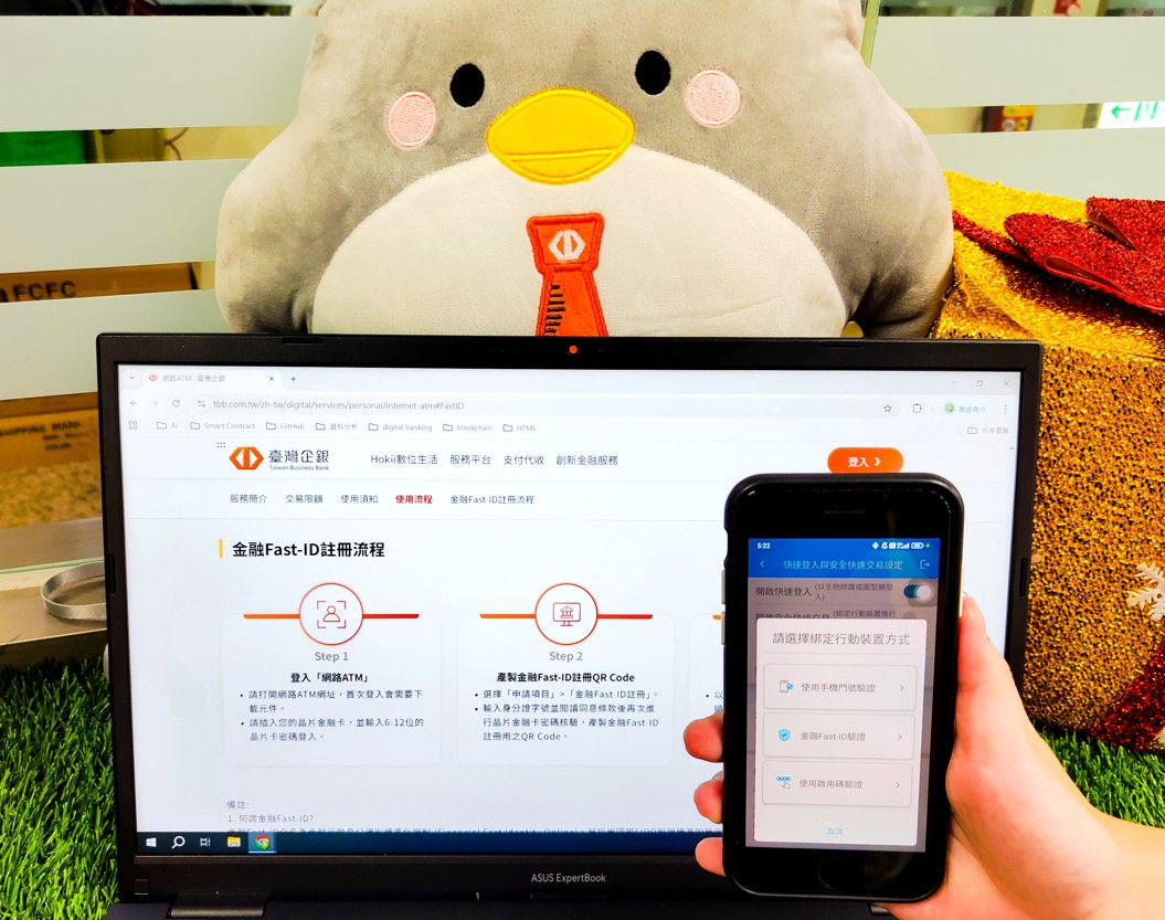 此外,臺企銀亦於網路ATM提供金融Fast-ID註冊之核驗機制,客戶可持臺企銀或他行晶片金融卡至臺企銀網路ATM進行核驗並產製註冊用QR Code,再由驗證機構金融Fast-ID APP掃描,即可快速完成註冊,後續於其他驗轉中心之參加機構線上金融服務均能直接使用該金融Fast-ID進行身分核驗。