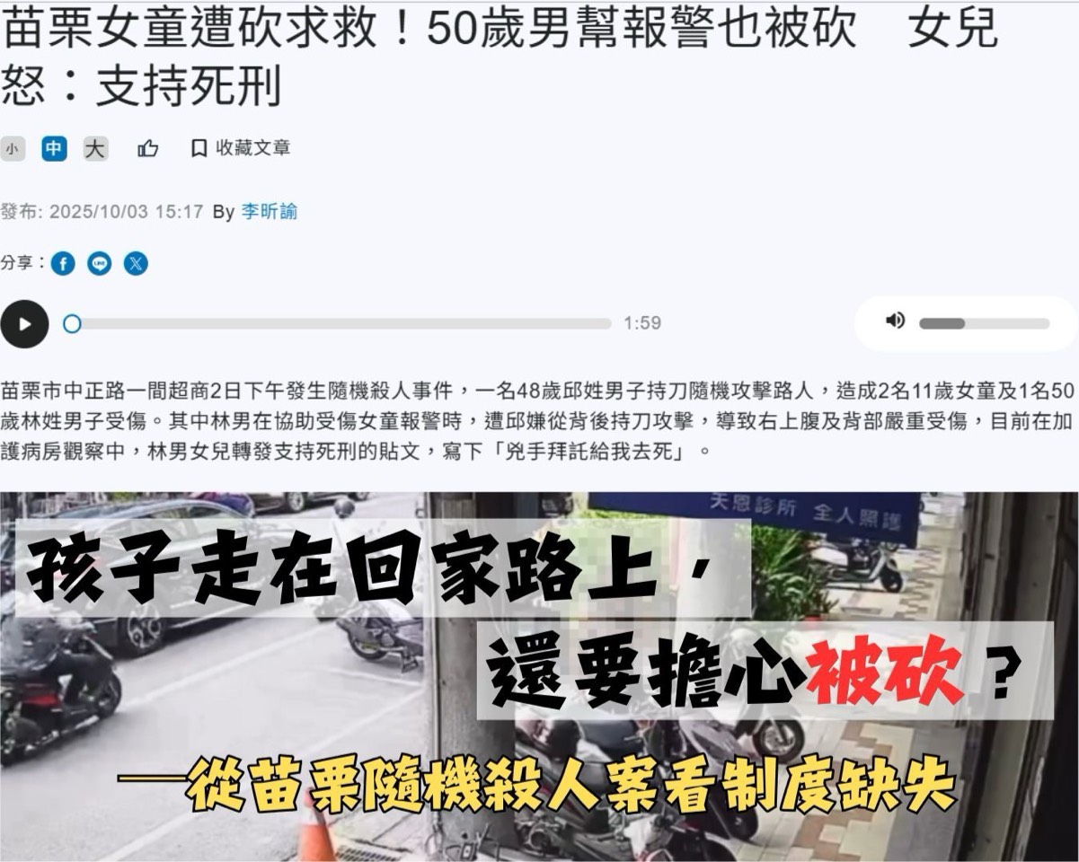 苗栗隨機殺人!11歲女童左胸中刀命危
