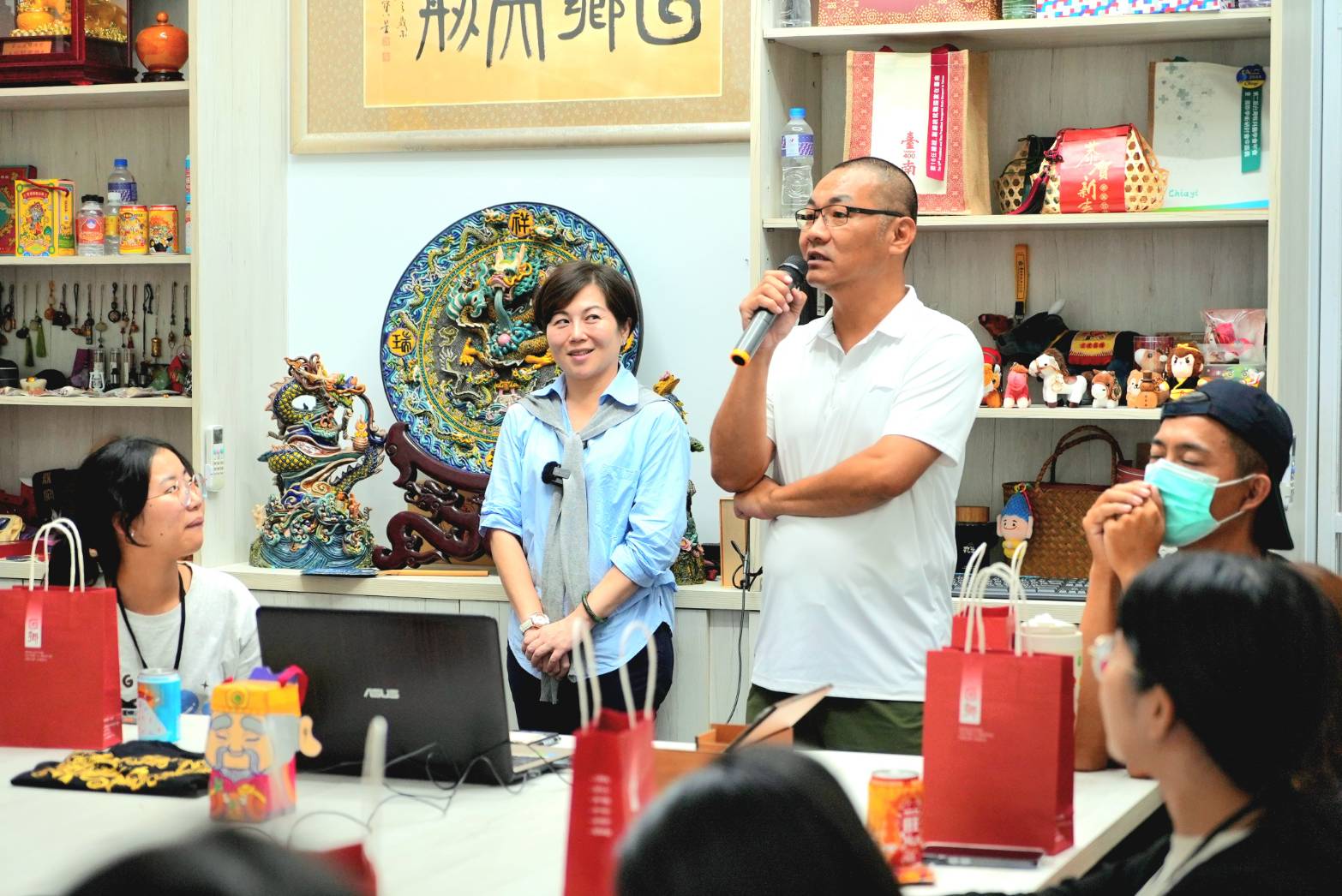 ↑圖說: 回鄉文創負責人陳世賢(解說者)講述,如何將傳統元素融入創新設計思維。(圖片來源:高雄市青年局提供)