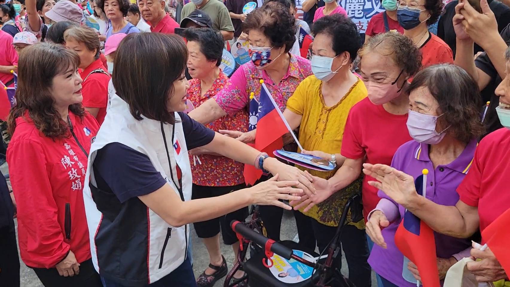 國民黨立委兼高雄市黨部主委柯志恩,10日一早參加果貿社區國慶升旗活動,受到參加民眾熱烈歡迎,許多民眾搶與柯志恩合照,柯志恩也逐一和民眾握手打招呼,共同祝賀中華民國生日快樂。
