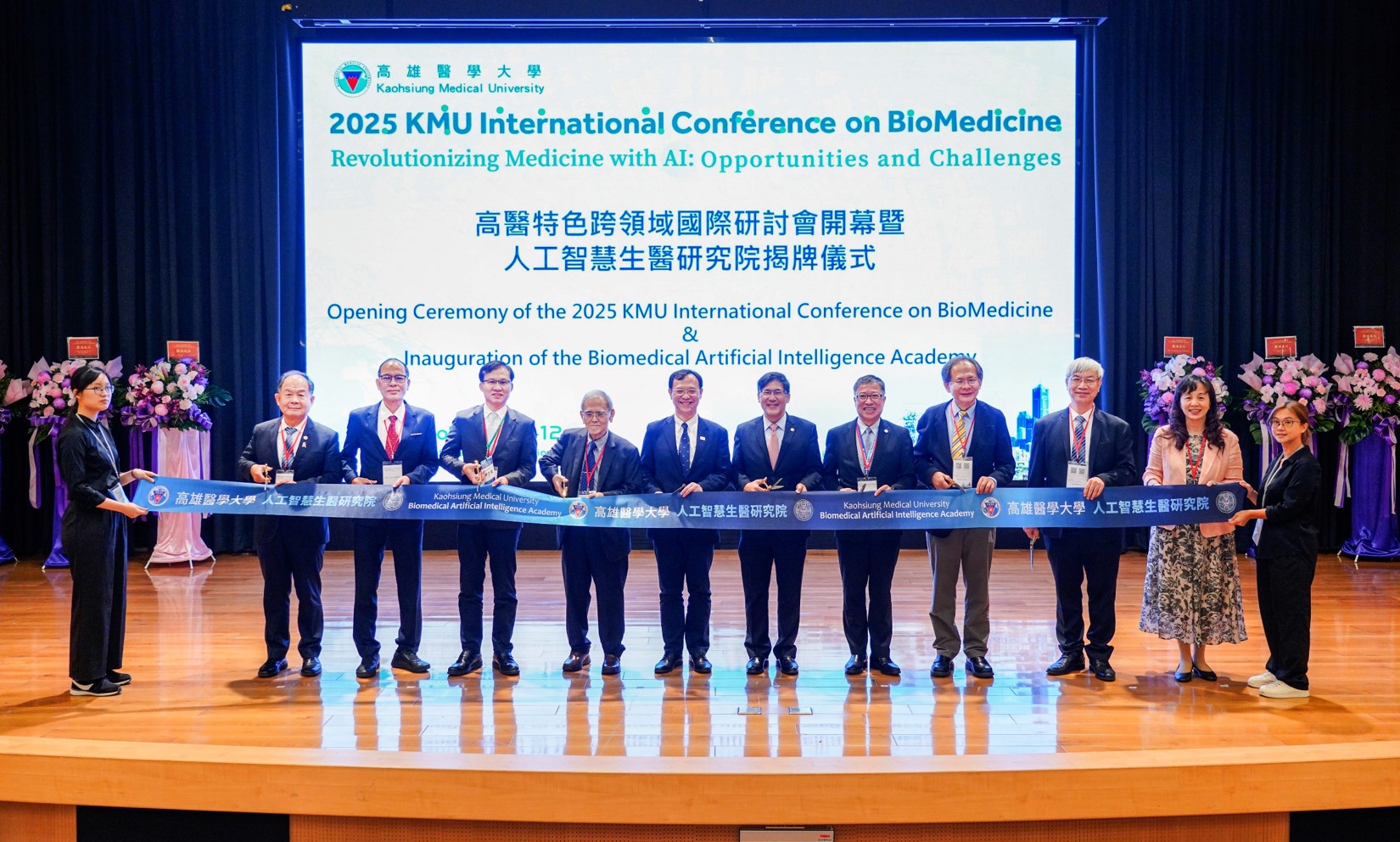 高雄醫學大學10月10日至12日舉辦「2025高醫特色跨領域國際研討會(2025 KMU International Conference on BioMedicine, ICOBM)」,並於開幕式舉行「人工智慧生醫研究院」揭牌典禮,宣示高醫大正式邁入智慧醫療與跨領域創新研究的新階段。典禮邀請衛生福利部部長石崇良、中央研究院院士吳成文、國家衛生研究院院長司徒惠康及國內外產學研代表蒞臨,共同見證高醫邁向智慧醫療新時代的重要時刻。