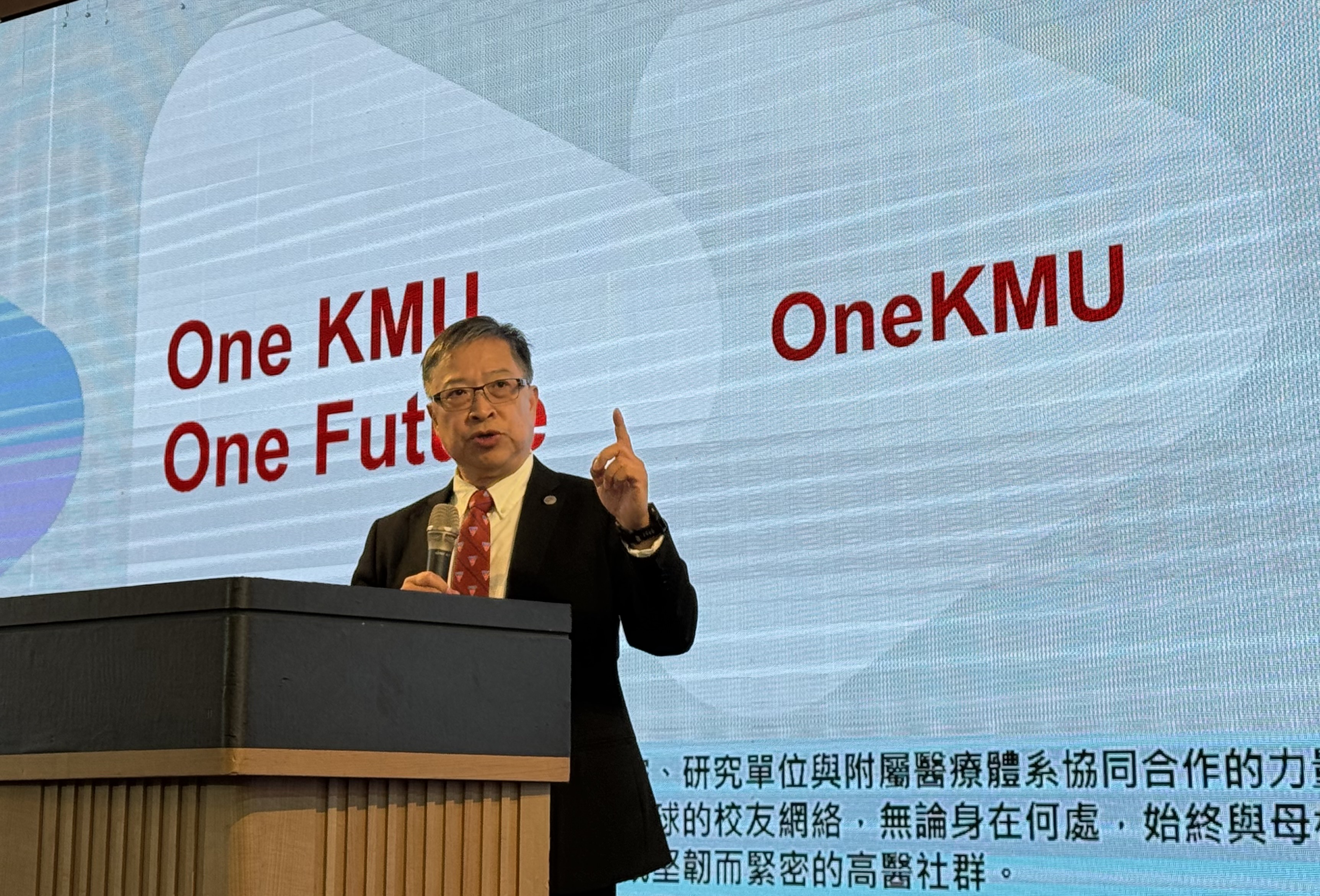 高醫大校長余明隆指出,今年校慶以「One KMU」為核心倡議,凝聚校內外資源與共同體力量,深化在地、鏈結國際,培育具前瞻視野與社會責任感的卓越人才,持續推動健康永續與社會福祉。