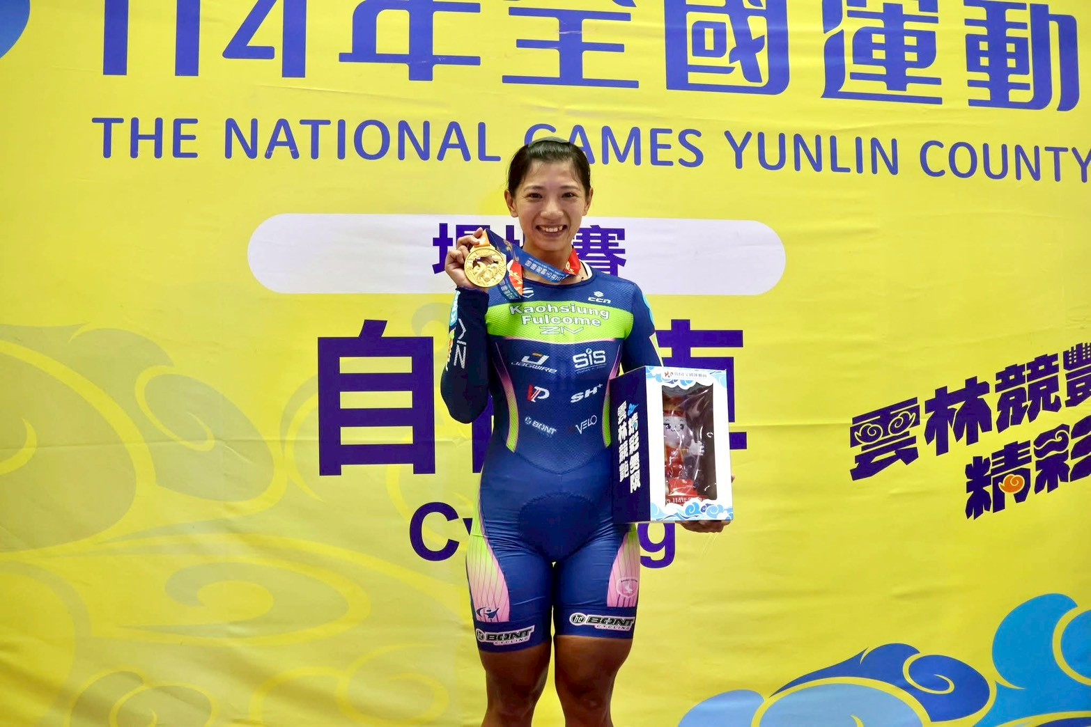 ↑圖說:高雄市自由車好手黃亭茵榮獲女子組個人全能賽、追逐賽雙料金牌。(圖片來源:高雄市運發局提供)