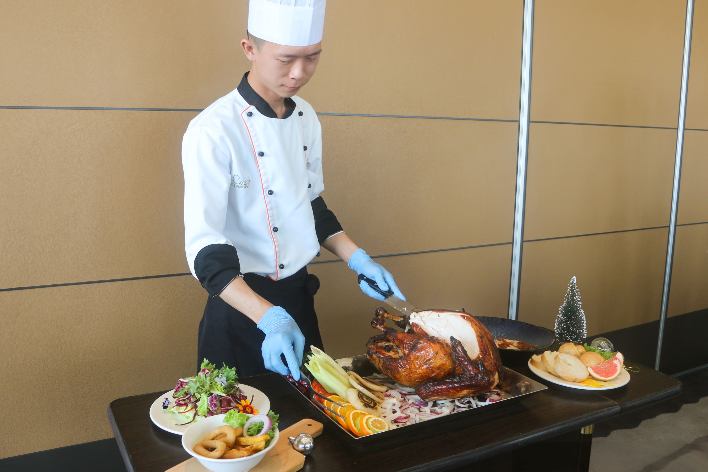 ↑圖說:「感恩節火雞盛宴」由副主廚嚴選國外進口火雞,適合5人團聚享用,內用分享餐提供主廚桌邊現切服務,前5名預訂再贈品牌好禮。圖/和逸飯店高雄中山館提供(圖片來源:和逸飯店‧高雄中山館提供)
