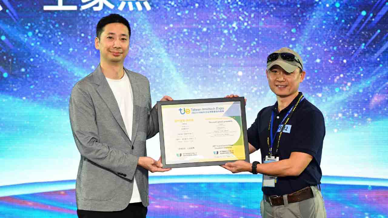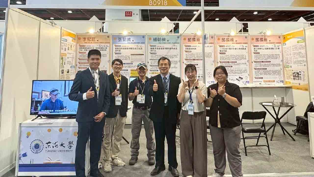 ↑圖說:東海大學於全國最具規模的科研盛會「台灣創新技術博覽會」中,勇奪一金三銅及企業特別獎五項大獎。(左2)企管系張譽騰教授、(右2)化材系李冠廷教授。(圖片來源:東海大學提供)