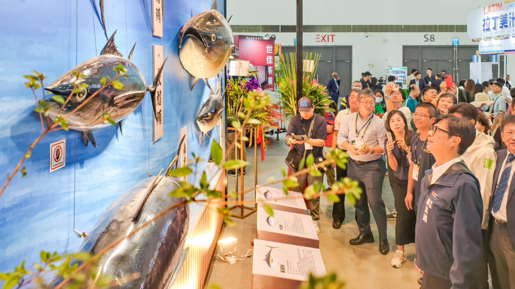 ↑圖說:陳其邁參觀鮪魚公會展區。(圖片來源:高雄市海洋局提供)