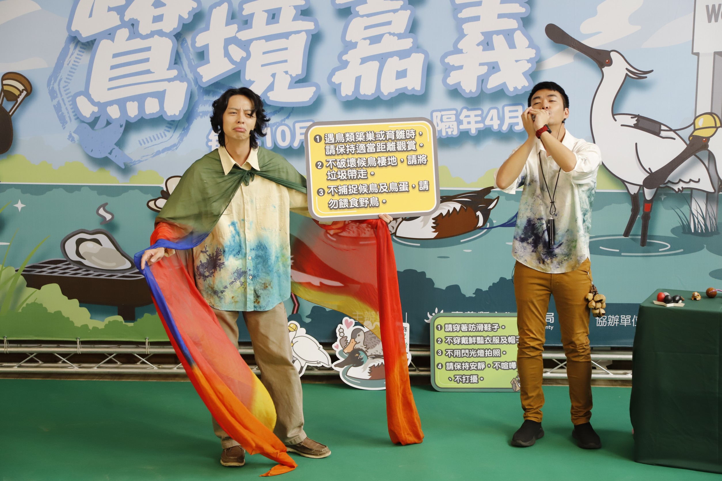 ↑圖說:記者會上用情境劇提醒民眾賞鳥應注意事項。(圖片來源:嘉義縣文化觀光局提供)
