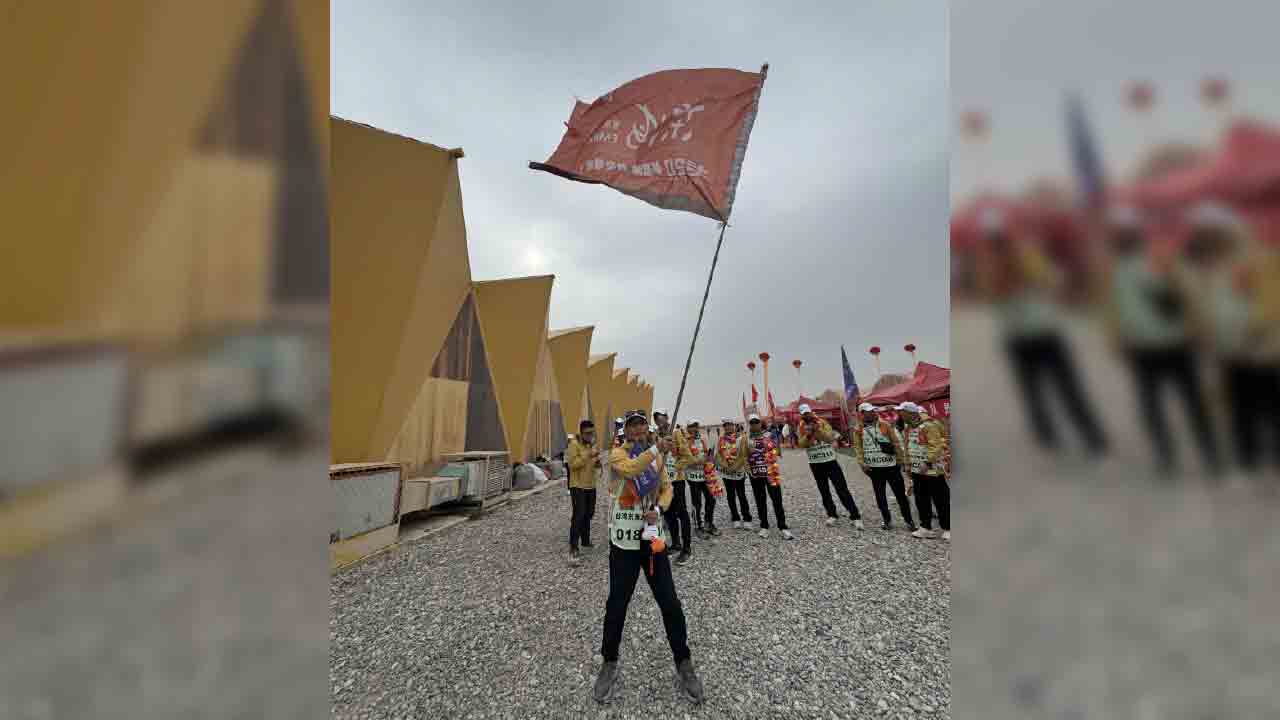 ↑圖說:許和捷院長率領東海大學管理學院EMBA前往敦煌戈壁沙漠路跑,團隊拿下四項大獎。(圖片來源:東海大學提供)
