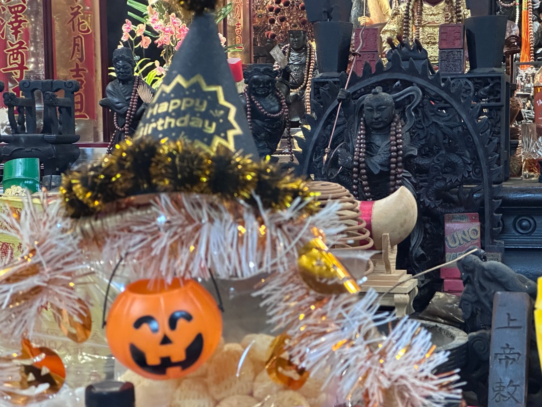 圖說:太子爺公生日供桌以萬聖節風格裝飾,萌度爆表 (圖片來源/記者林薇安攝)