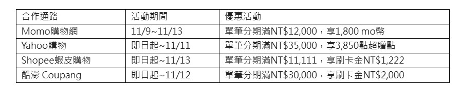 此外,星展亦攜手其他各大電商推刷卡優惠,活動內容如下: