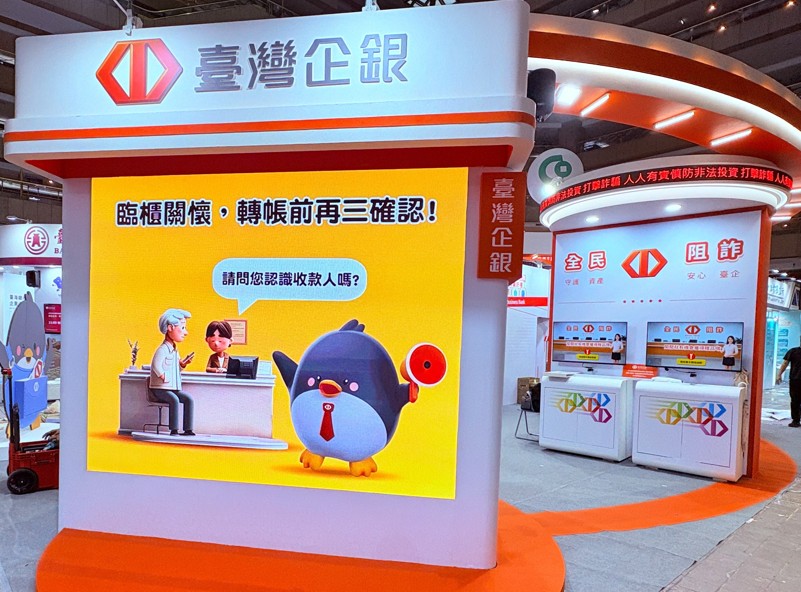 「防詐騙電話亭」可一鍵了解「SIM卡阻詐」、「資安防護健診」及「安全鎖」三大防詐創新科技,民眾還可化身「Hokii打詐超人」擊退詐騙魔王;「金安研習營」則請民眾擔任金融安全導師,指導學員識破詐騙手法,與臺灣企銀攜手守護家園。
