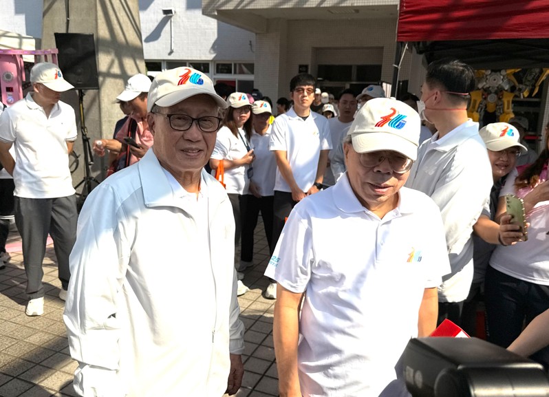運動會開始後,王文淵(上圖右,記者李錦奇攝影)與8月剛接任台塑企業總裁的吳嘉昭(上圖左),還一起逛了一同舉辦的園遊會,受到員工們熱情歡迎,王吳兩人邊走邊吃冰淇淋,展現平日少見的輕鬆一面。