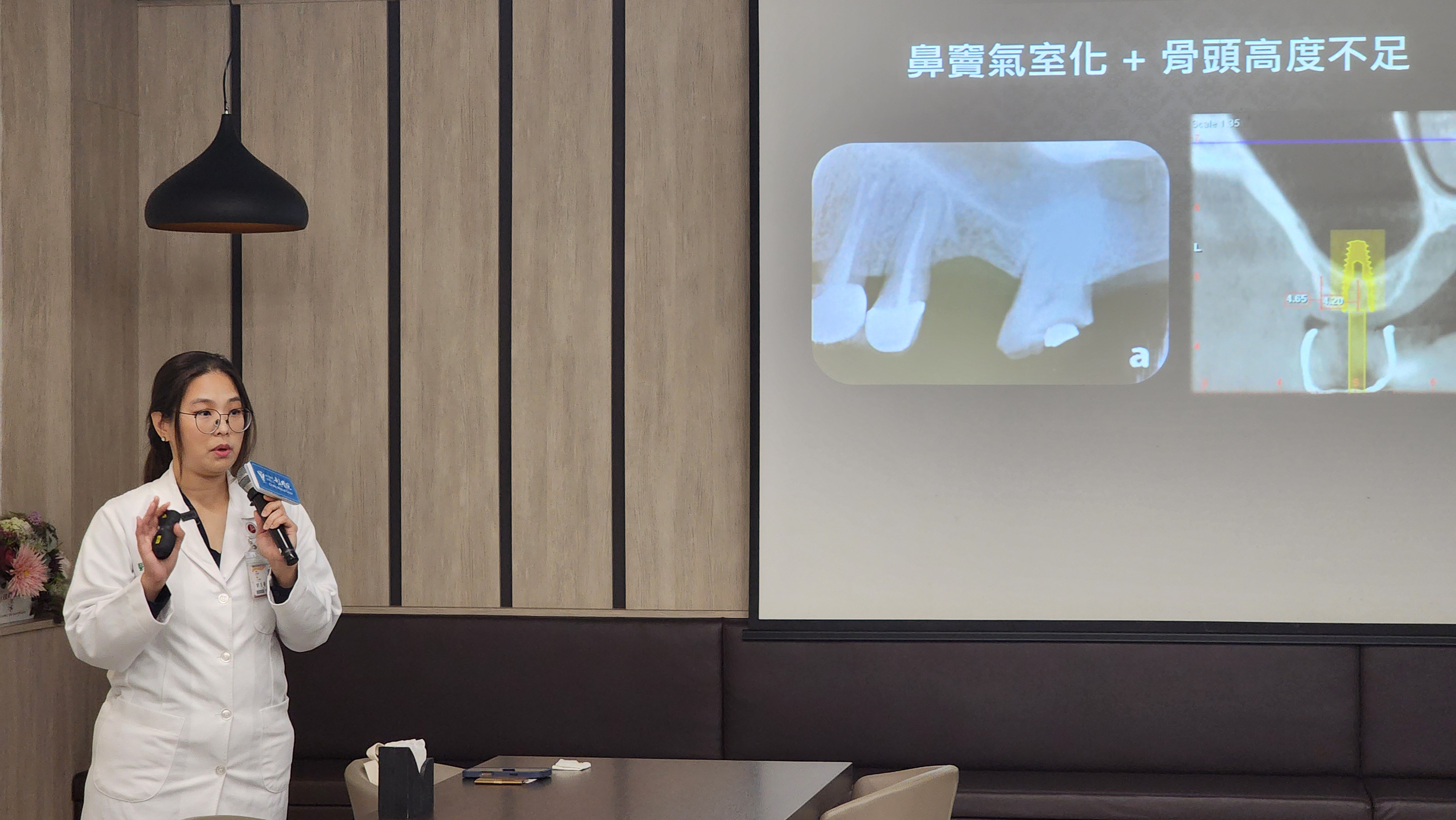 圖說:奇美醫院牙醫部牙周病科主治醫師劉昱菁強調術前影像評估與骨重建的重要性,協助患者提升植牙成功率 (圖片來源/記者林薇安攝)