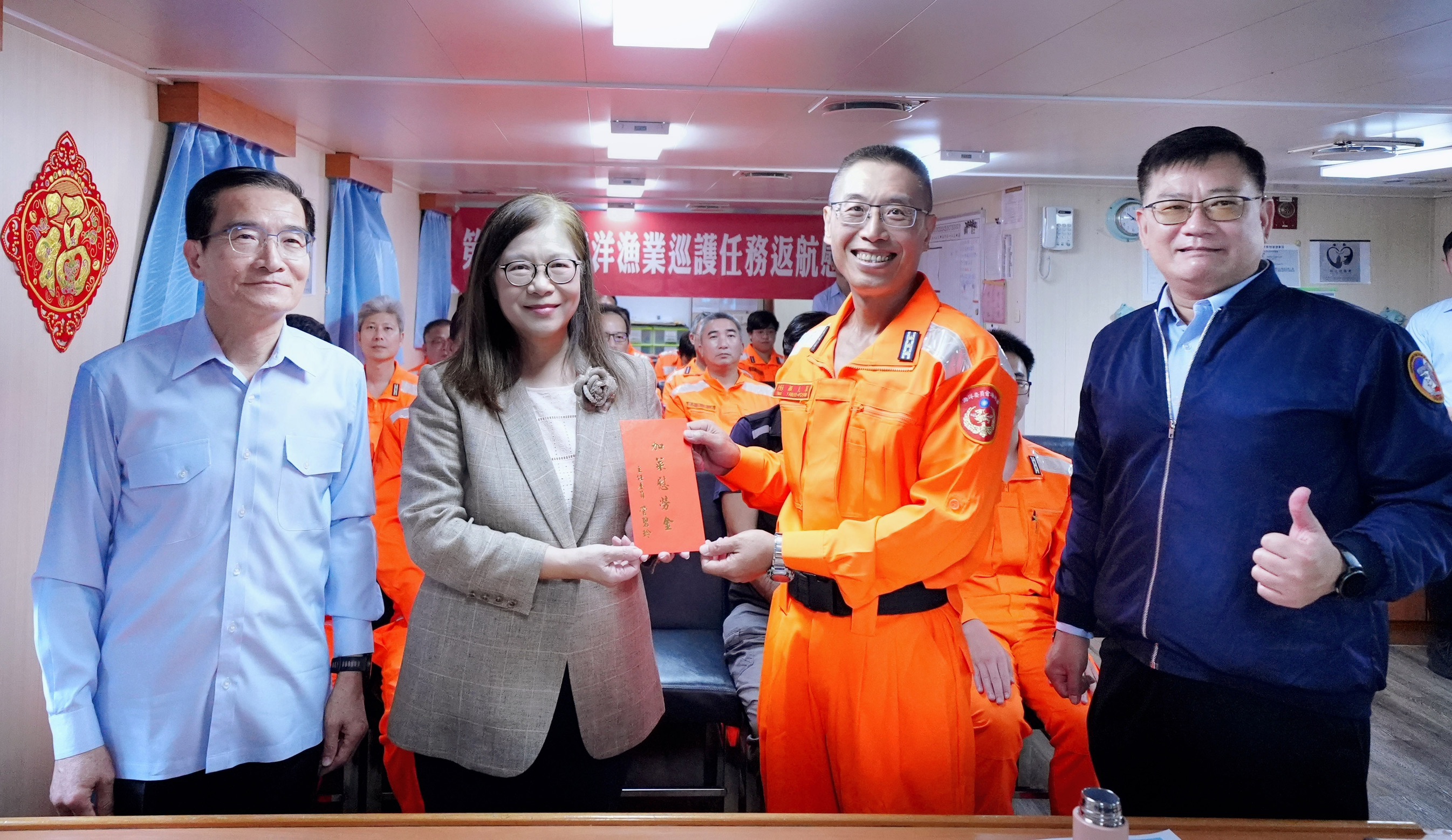 她感謝海巡署與漁業署長期協作無間,使今年三航次巡護任務圓滿達成,也期盼全體同仁能好好休息,再以更充足的能量迎接下一次任務,繼續守護漁民、捍衛海域安全。