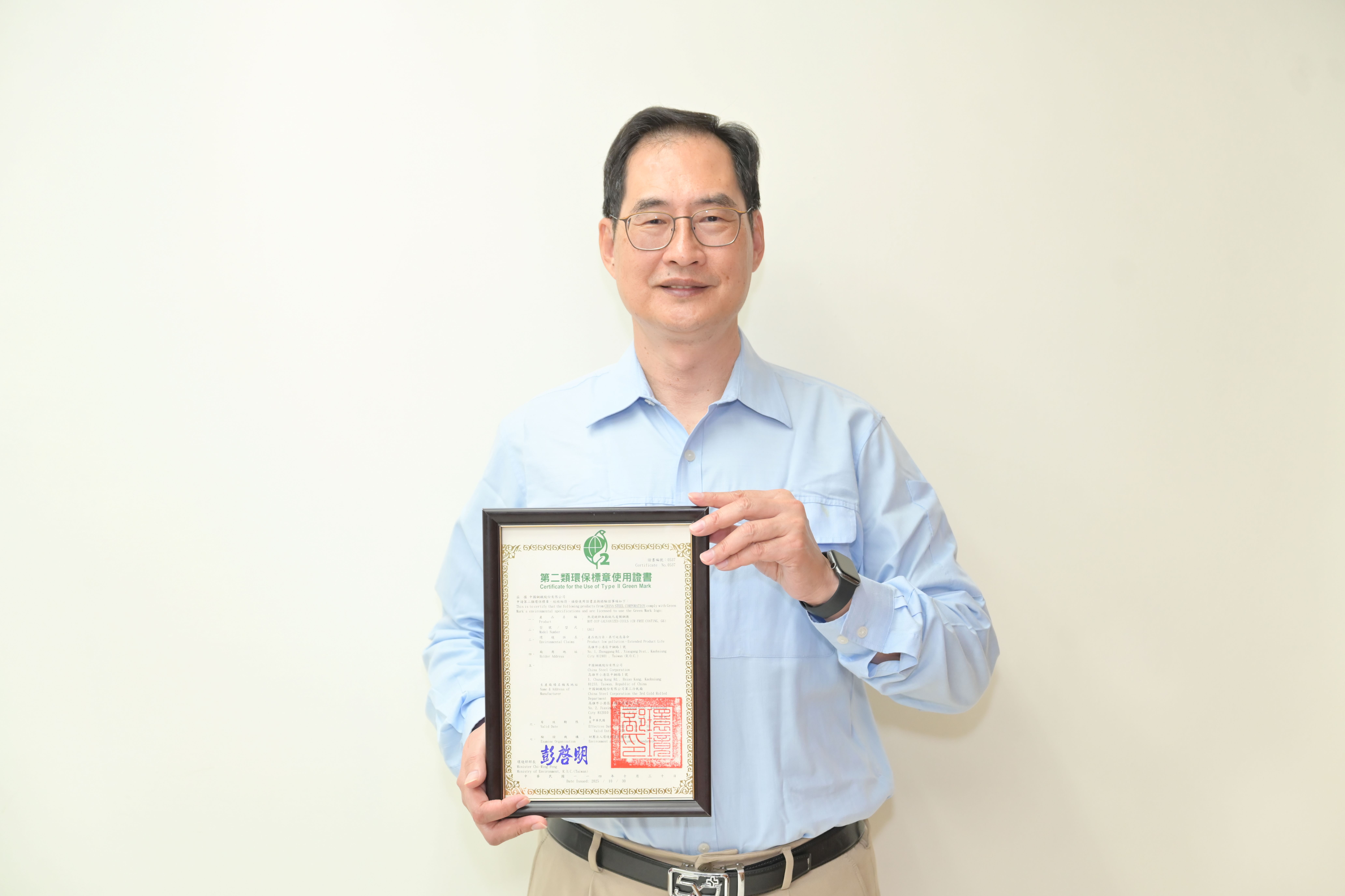 因應產品無鉻化環保趨勢,中鋼去年開發的「熱浸鍍鋅鐵合金無鉻鈍化皮膜鋼」(Cr-Free Coating Hot-Dip Galvannealed steel,以下簡稱:無鉻化GA鋼材)取得第二類環保標章後,獲得國內客戶諸多肯定,去年內外銷訂單約4,000噸,較前年成長100%。中鋼今(2025)年再以「熱浸鍍鋅無鉻鈍化皮膜鋼」(Cr-Free Coating Hot-Dip Galvanized Steel,以下簡稱:無鉻化GI鋼材)進行申請並通過環境部嚴謹審查,取得第二張第二類環保標章,以促進客戶對環保鋼材的認同與採用,持續攜手下游業者拓展綠色商機。