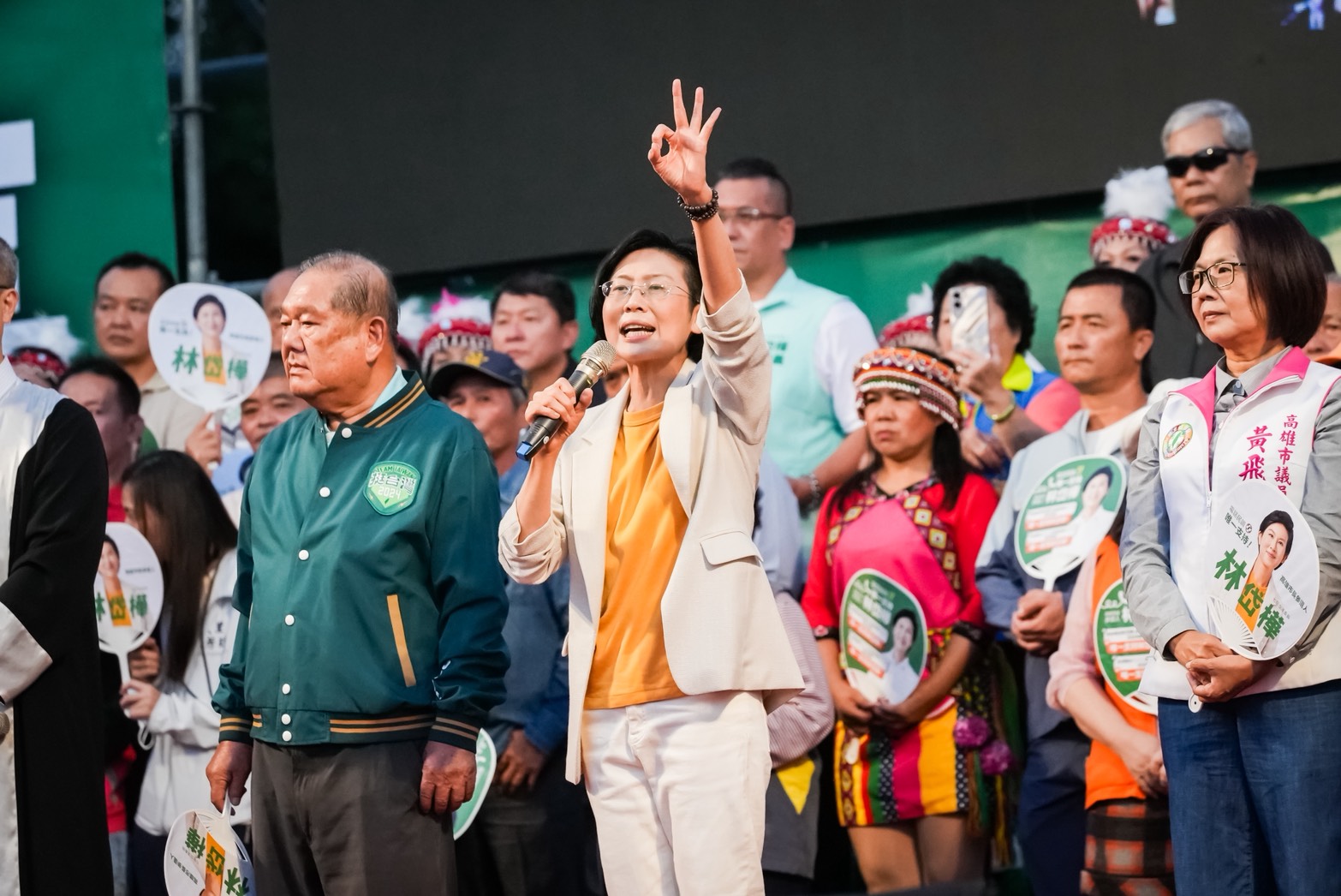 民進黨高雄市長初選參選人、立法委員林岱樺22日前往旗山舉辦大型造勢活動,林岱樺再次展現紮實的基層實力,主辦單位宣稱現場湧入2萬人參加,高雄各大社團及區里組織代表,以及多位市議員等地方人士上台為林岱樺站台。