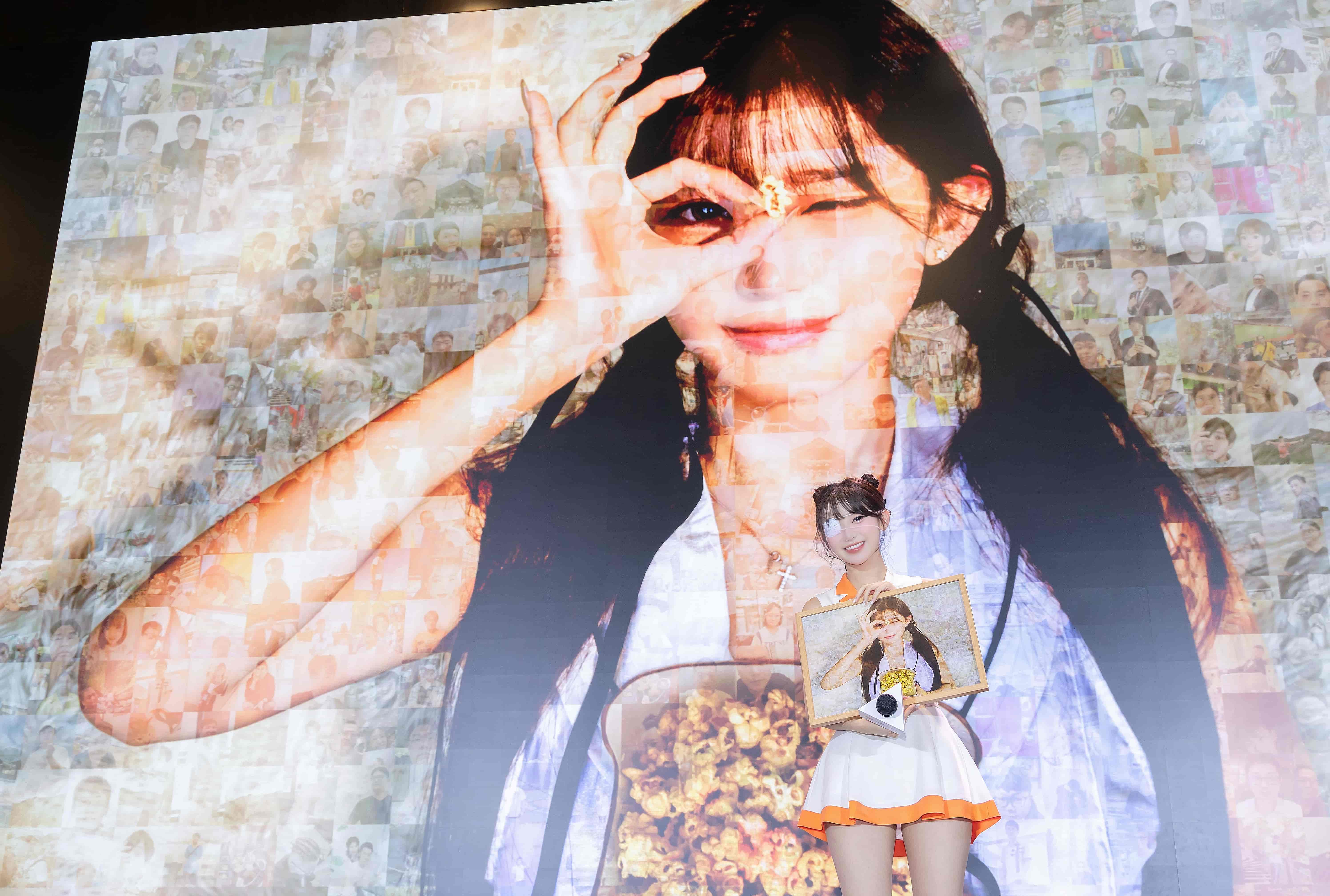 活動尾聲,工作人員獻上以現場粉絲照片拼貼而成的「李珠珢蒙太奇」拼貼照片作為驚喜禮物,李珠珢驚喜又感動,眼泛淚光道感謝。(如上圖,台灣大提供)