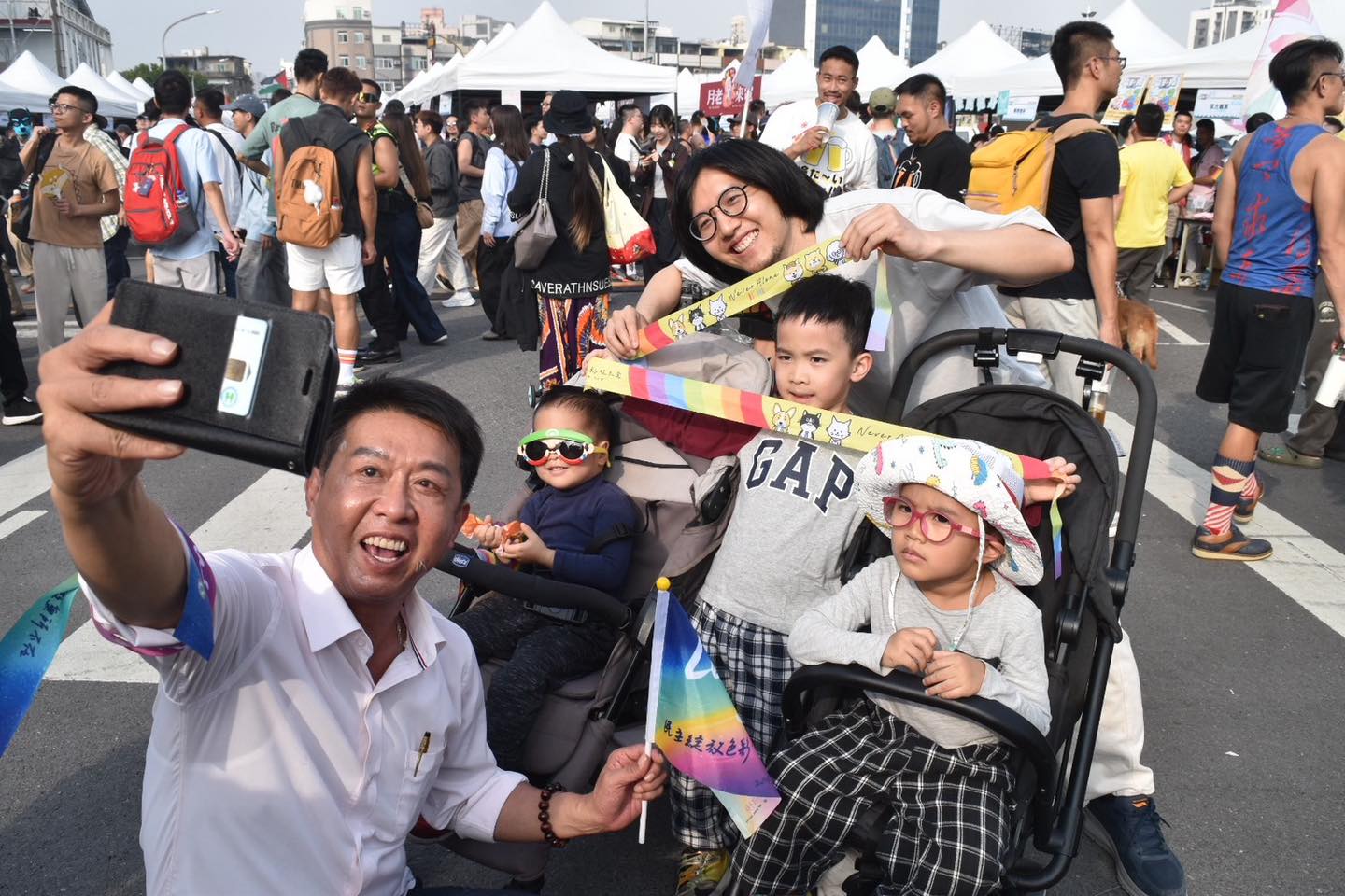 許智傑則是和兒子、三個小孫子一起參加,他表示,鳳山車站此次加入彩虹點燈,成為遊行亮點之一。他也提到,先前媒合航空公司與台灣同志運動發展協會,希望在明年高雄亞洲同運會為選手提供更多協助。本屆遊行再次證明高雄是一座多元包容的城市,也期待未來持續打造屬於大家的幸福。