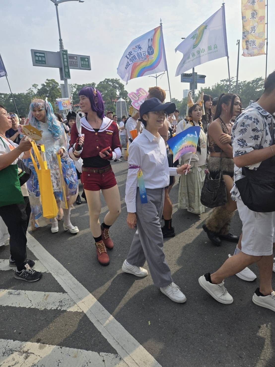 林岱樺也現身遊行隊伍,她表示,每一個人都有被愛的權利,並指出高雄作為性別友善城市,未來只會做得更多、更好。