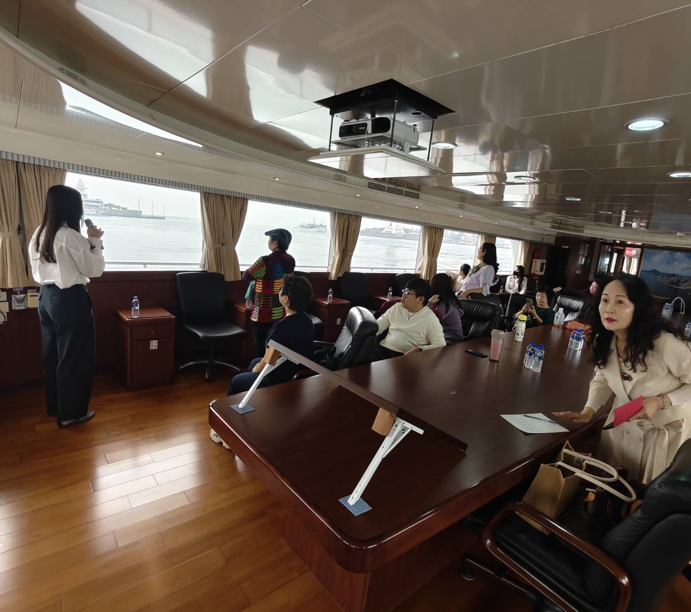 此次參訪由台灣港務公司公共事務處資深副處長陳慧宜、高雄港務分公司秘書處經理周進男等人負責接待,帶領學員探索高雄港「科技碼頭」的全新定位。空大師生搭乘台灣港務公司遊港船隻,沿途觀看碼頭的運作景象,包含貨櫃裝卸機具、修造船廠區、港區倉儲配置等,透過現場專業講解更清楚了解高雄港的發展脈絡與全球海運中的角色。許多來自大眾傳播學系的學生也表示,此次是第一次以「媒體」與「產業觀察者」的角度踏入港區,讓他們對港口運作與城市歷史有全新的視野。