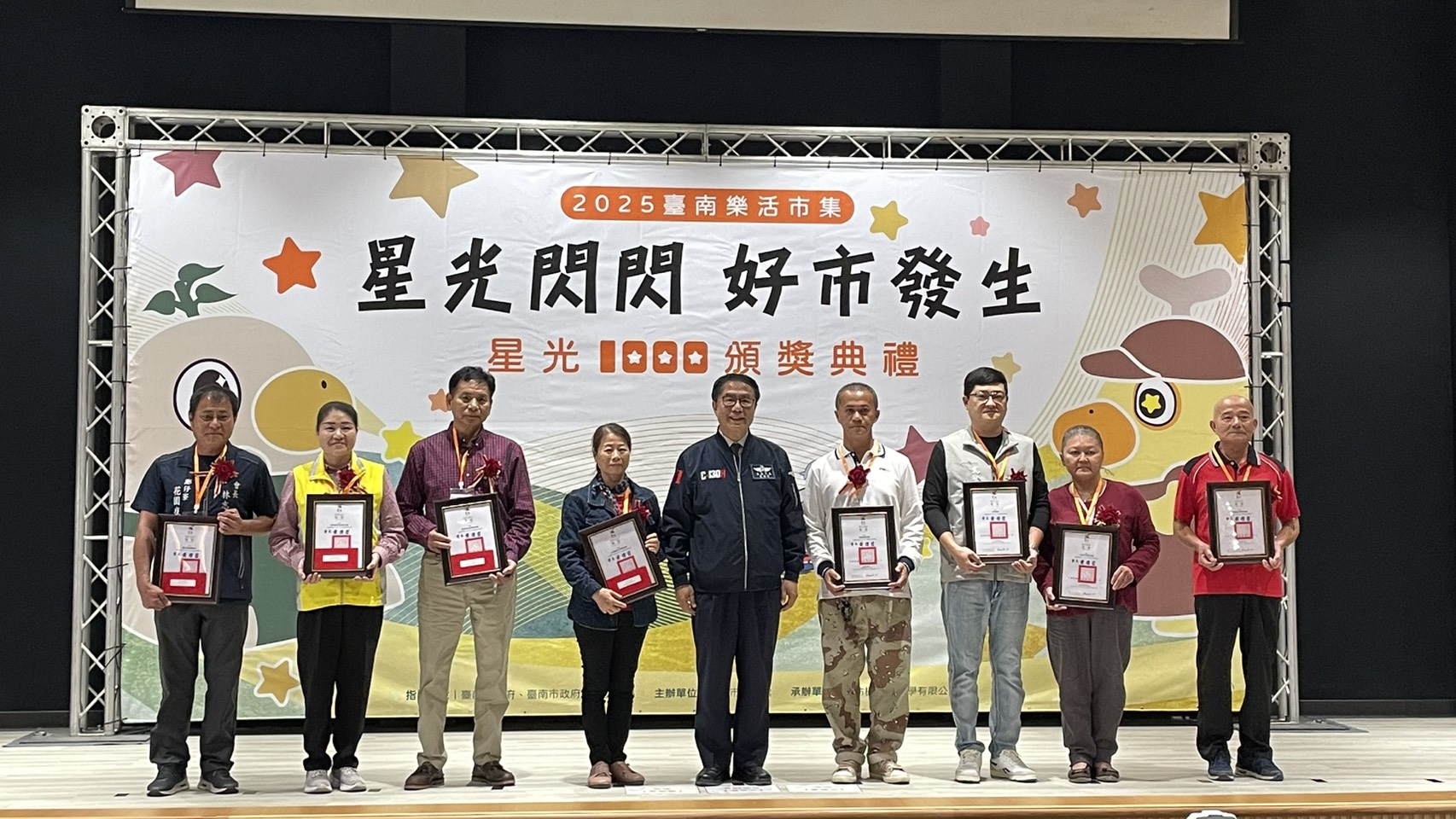 臺南市今年在經濟部「優良市集暨樂活名攤評核計畫」再創佳績,全市共獲得1,128顆星,累計星等突破8,000顆。市府今(8)日舉行「2025臺南樂活市集星光1000頒獎典禮」,由市長黃偉哲頒發五星市集與名攤獎項,其中花園夜市三度蟬聯五星、市場改造後重新出發的「西門淺草青春新天地」也首次入列五星市集。
