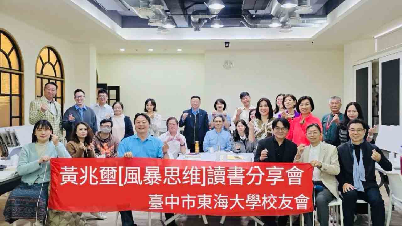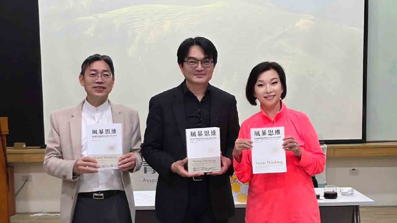 ↑圖說:《風暴思維》黃兆璽(中)以危機管理、全面影響為題進行演講,周學鏵理事長(左)、台中校友會長邱于珊(右)肯定「善意框架」是化解傳播危機的重要關鍵。(圖片來源:青年永續領導力發展協會提供)