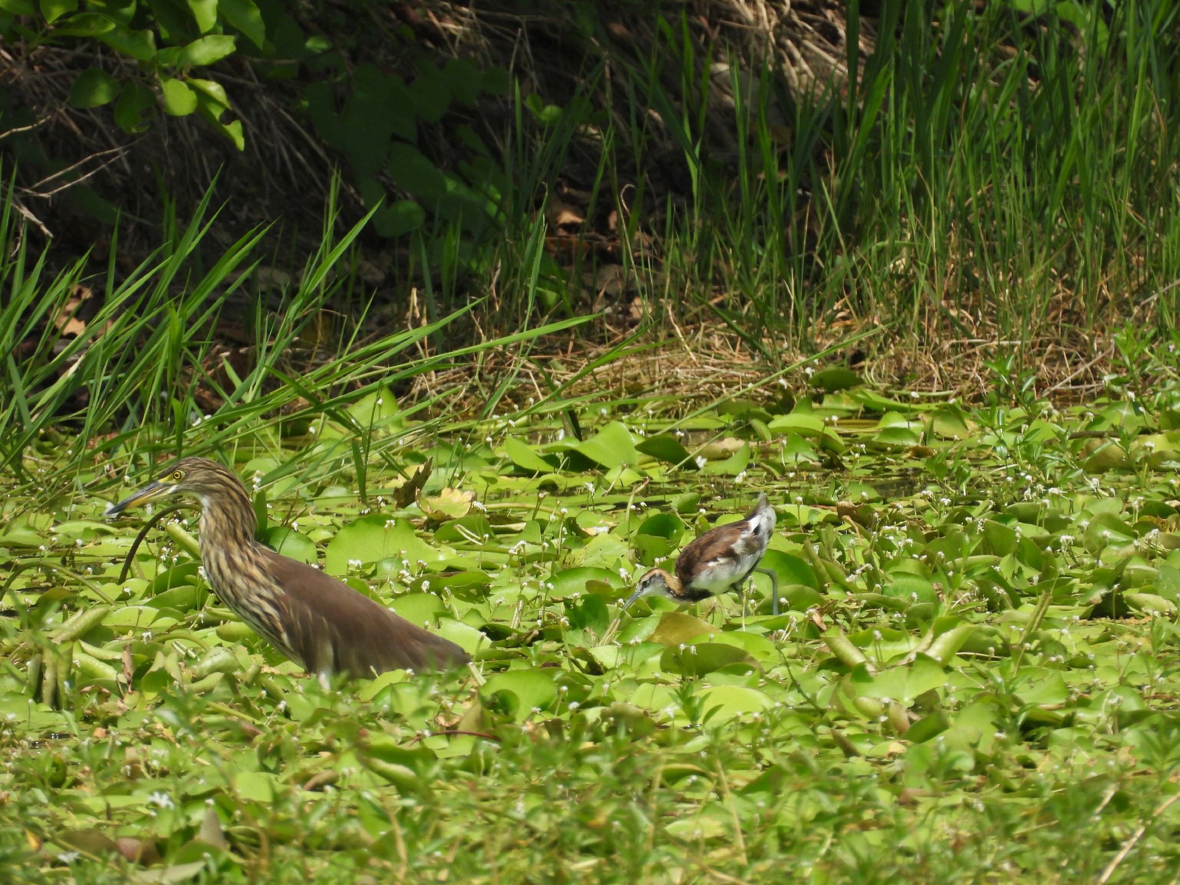 ↑圖說:池鷺與水雉於洲仔濕地活動。(圖片來源:高雄市工務局提供)
