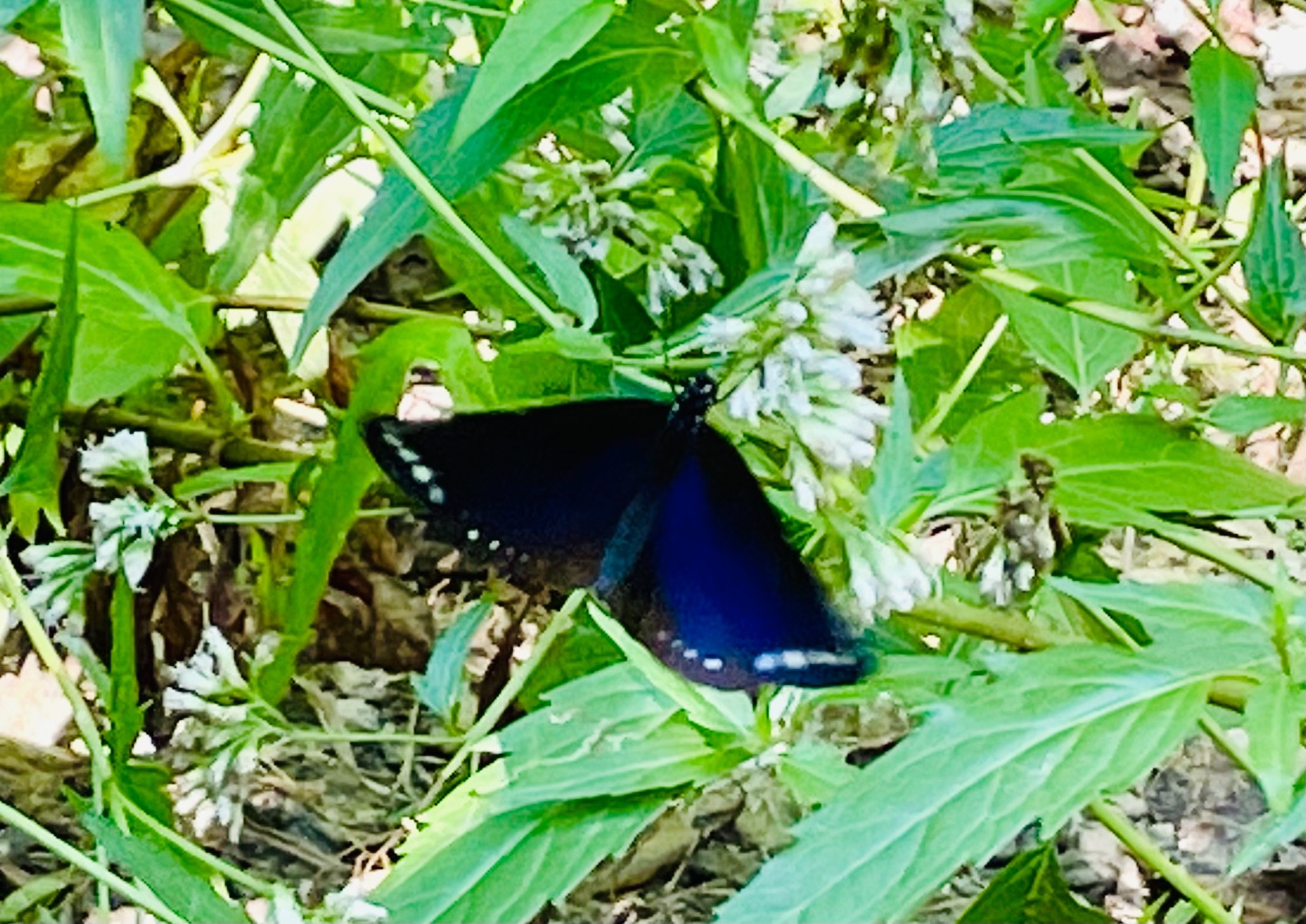 ↑圖說:斯氏紫斑蝶前翅背面上端有明亮的藍紫色光澤,相當美麗。(圖片來源:高雄市工務局提供)
