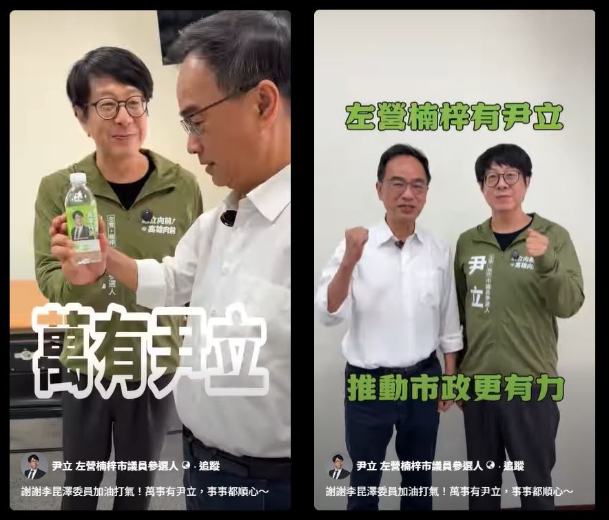 ↑圖說:尹立與立法委員李昆澤合拍短片,巧妙運用「萬有引力」諧音梗。(圖片來源:尹立團隊提供)