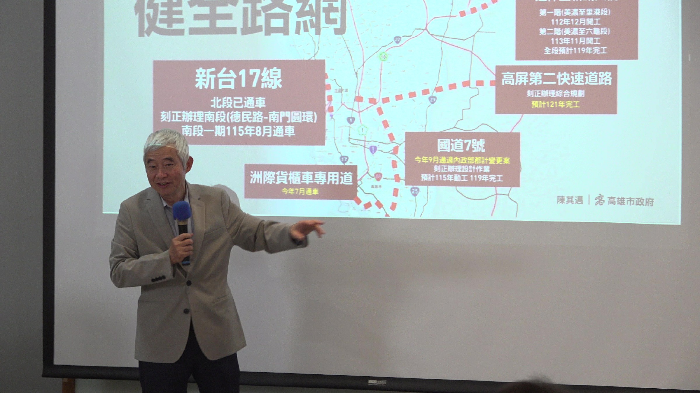 東高雄打造山城遊憩核心、導入無人車交通;西部沿海強化漁港重整與冷鏈建置,推動海洋科技;北高雄形成航太扣件、無人載具、低軌衛星科技聚落;南高雄依託國七、港口與國際機場,建構全球運籌中心;市區則以大眾運輸為主 spine 做 TOD 開發,全面升級商場、商辦與夜間經濟。