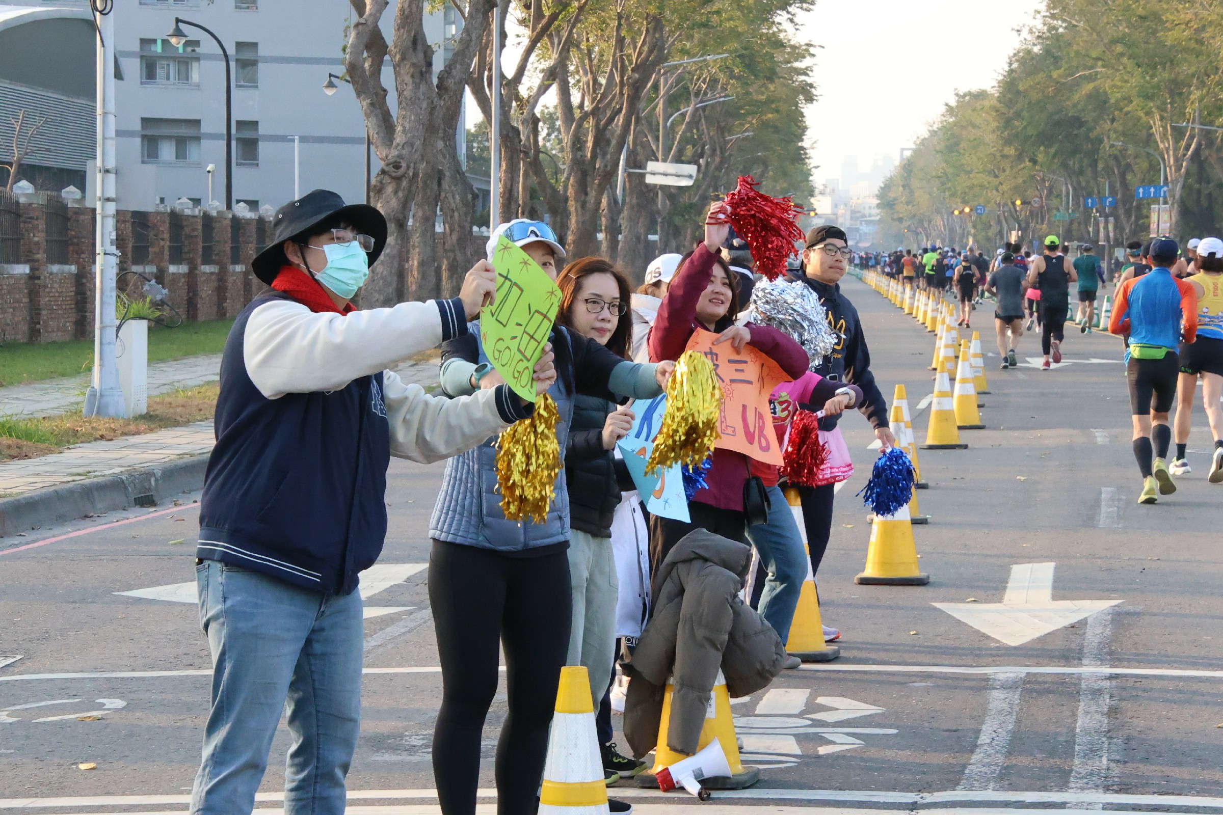 ↑圖說:沿路城市啦啦隊為跑者加油吶喊(圖片來源:高雄市運發局提供)