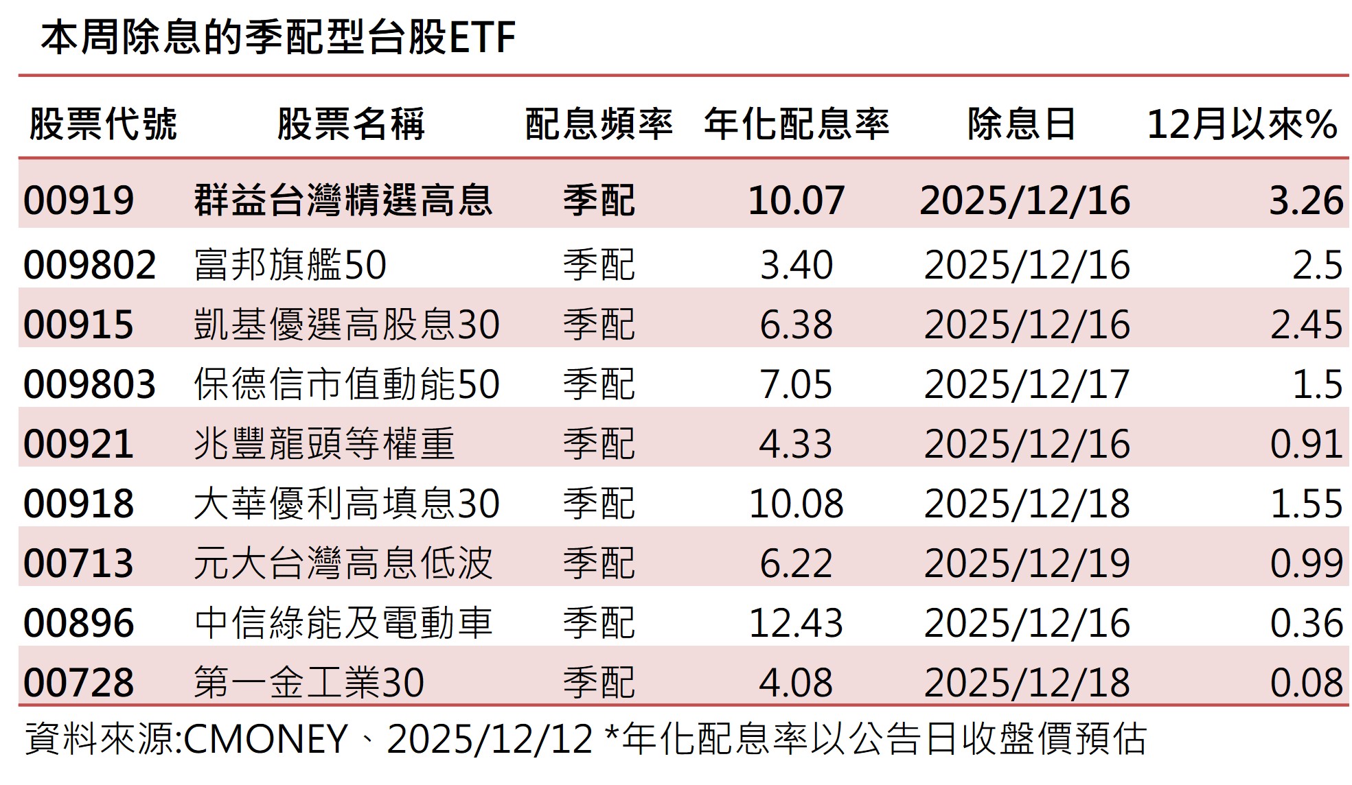 近期除息的台股ETF當中, 00919本月以來上漲3.3%,表現領先,今天也逆勢收紅上漲。