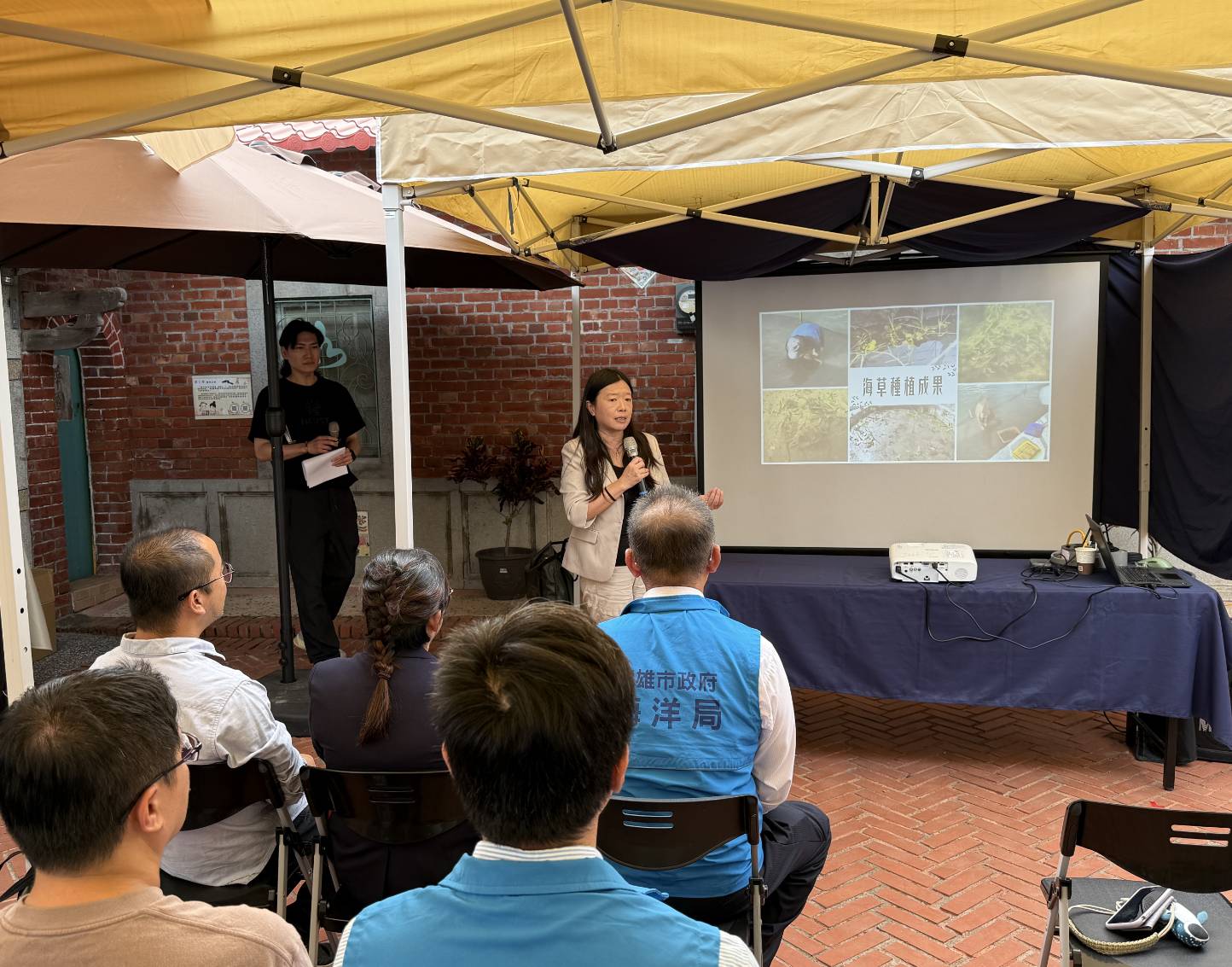 ↑圖說:高科大洪明昌副教授藍碳示範場域導覽(圖片來源:海洋保育署提供)
